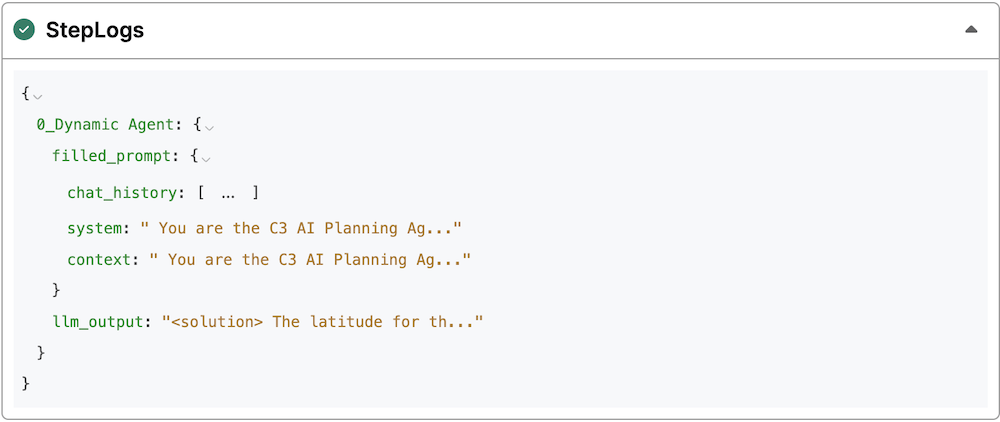 chatManagerSpecfield in the agent.config(). In this example, we would like the agent to always include the latitudes of furnaces when returning their locations. You can retrieve the system prompt from thechatManagerSpecin the Dynamic Agent configuration using the agent name:Pythonc3.Genai.Agent.Dynamic.Config.forConfigKey('CanvasAgent_default').getConfig().chatManagerSpecEdit the system prompt. You would instruct the agent explicitly with the new requirement and also edit the