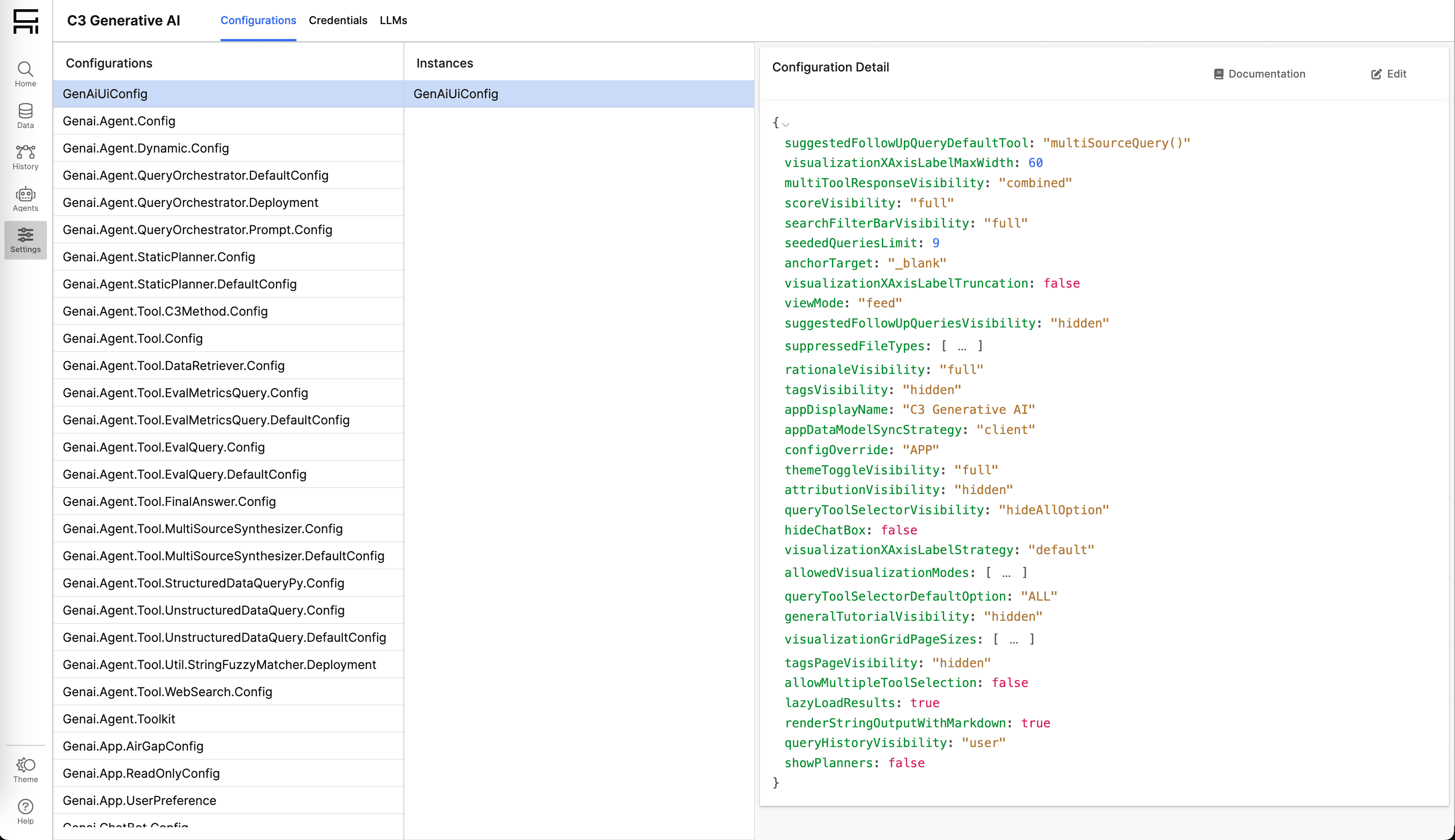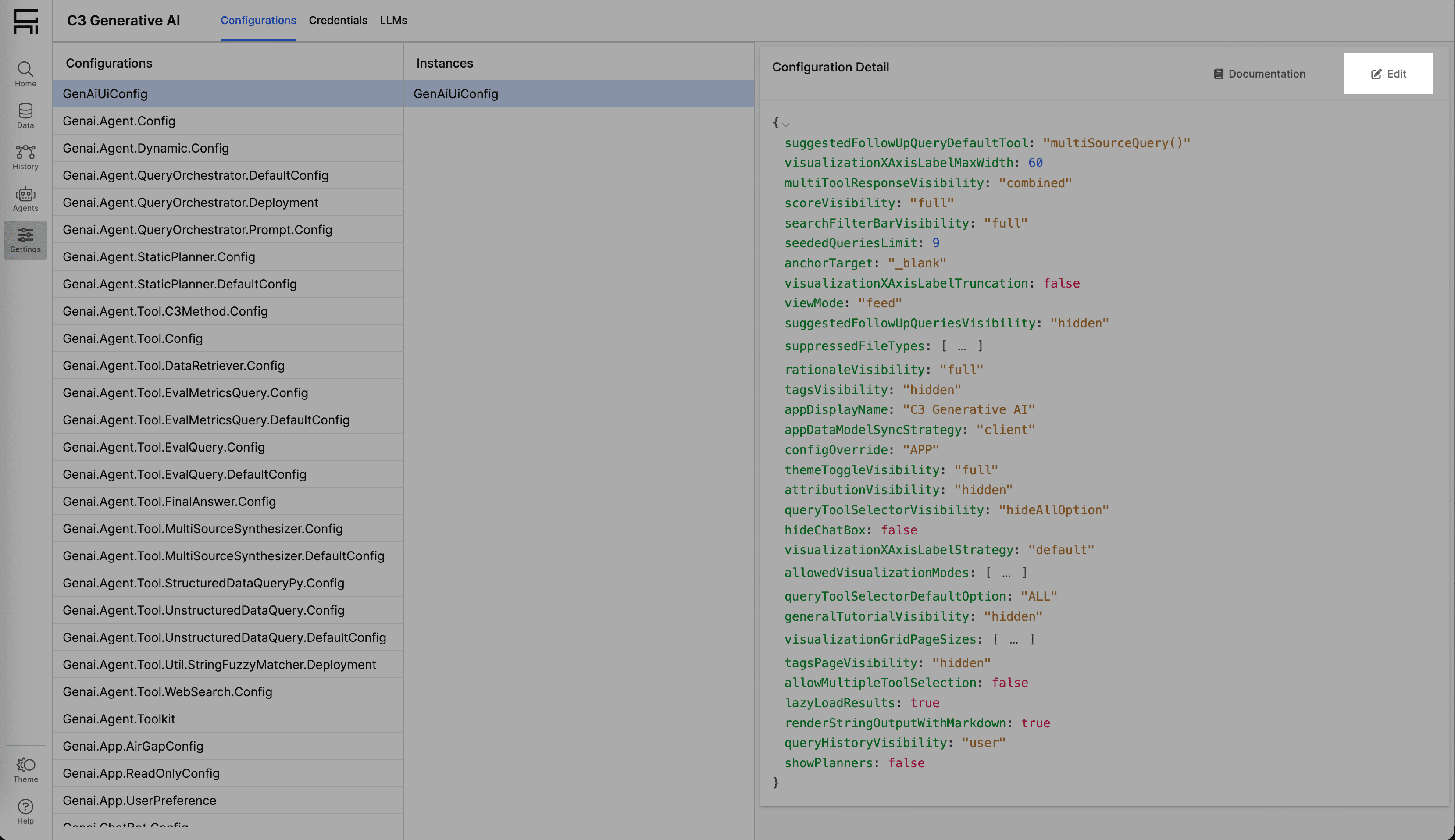 Currently, it's possible to update configurations that depend on a Config. Other configurable entities, such as Genai.Project, or Genai.Prompt, can't be updated from this page.