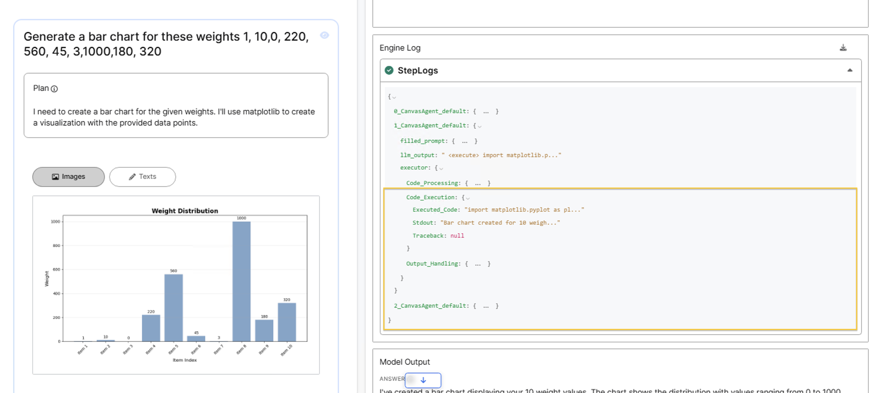 This section shows how the agent called your tools and what happened during execution. Locate executor -> Code_Execution.