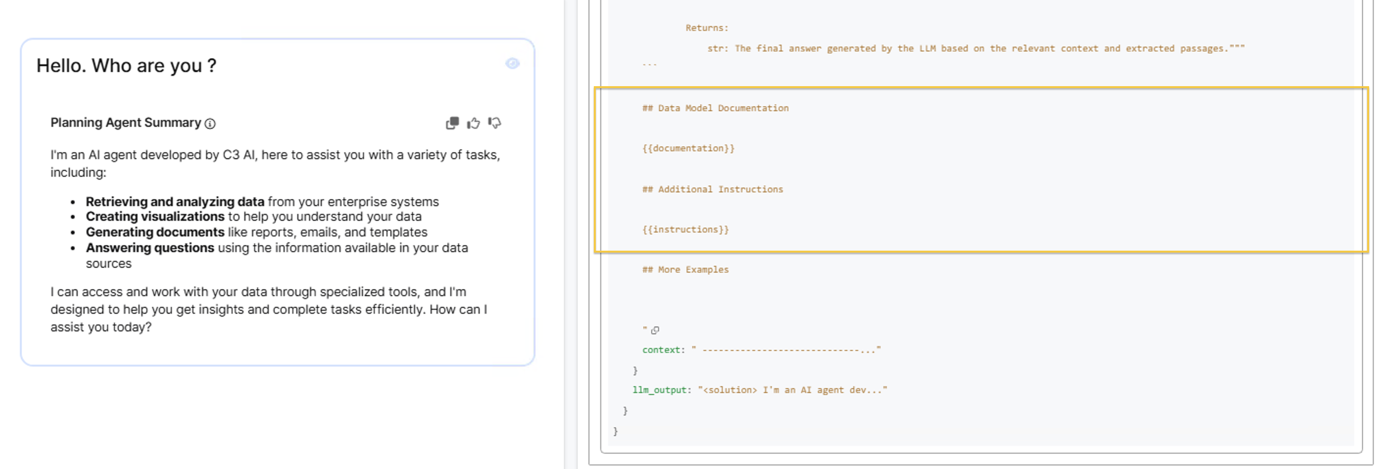 - Data model section: For structured query issues, confirm the relevant Type schemas appear here. Missing Type definitions prevent reliable structured queries.