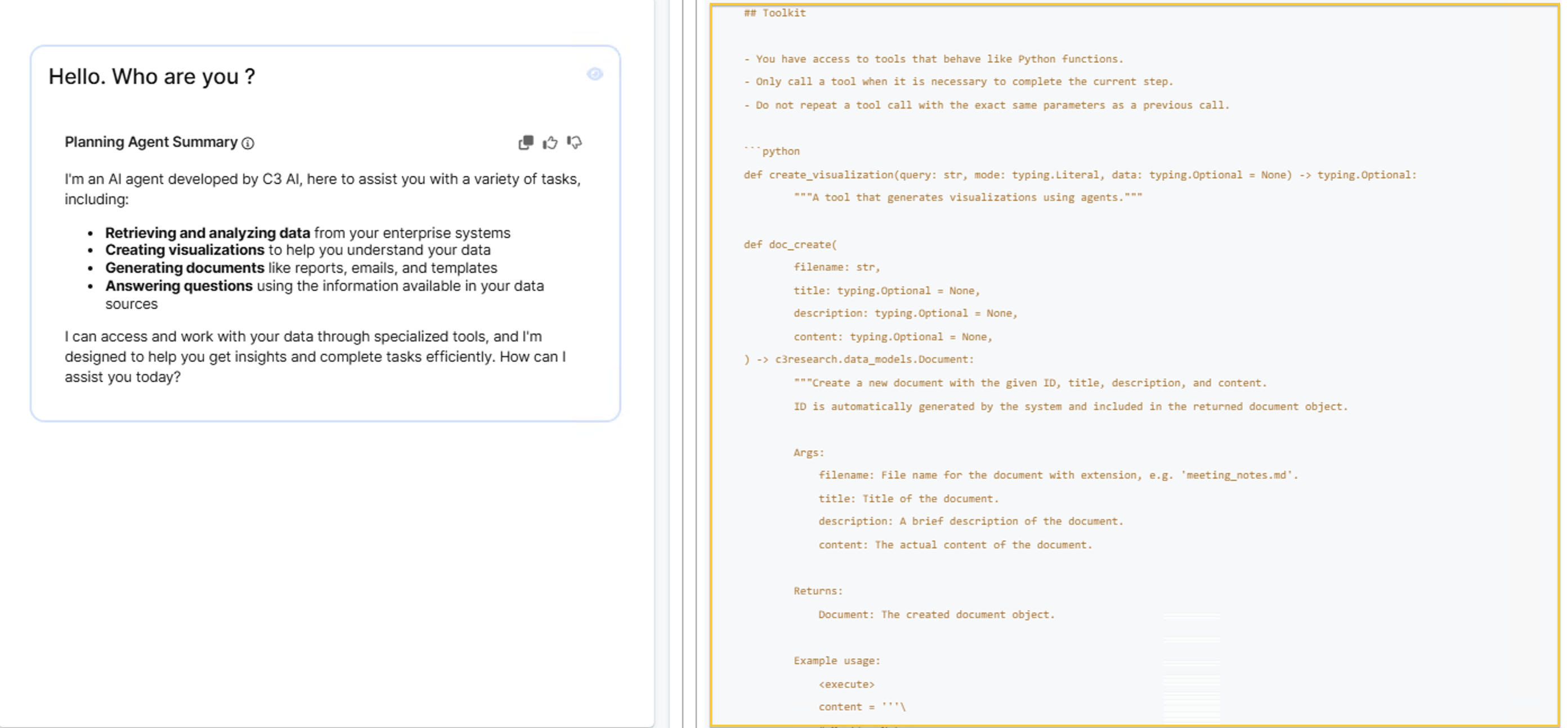 - Toolkit section: If Dynamic Agent can't find expected tools or calls wrong tools, verify the tools appear in this section. The system prompt must include tool definitions for the agent to access them.