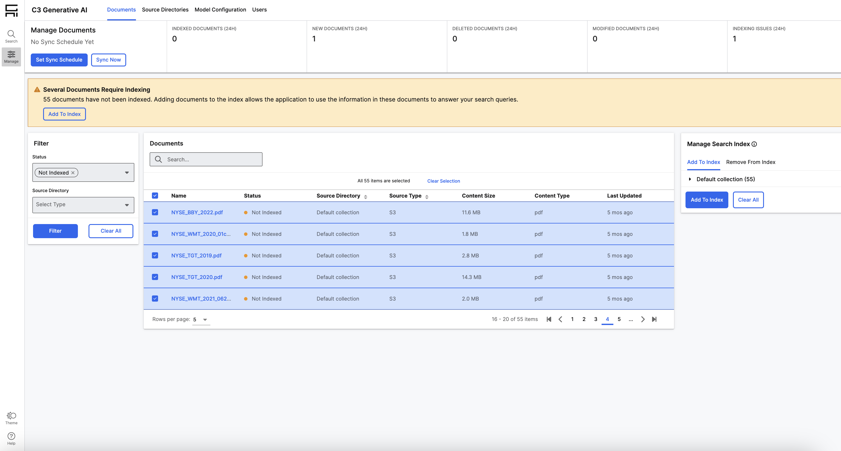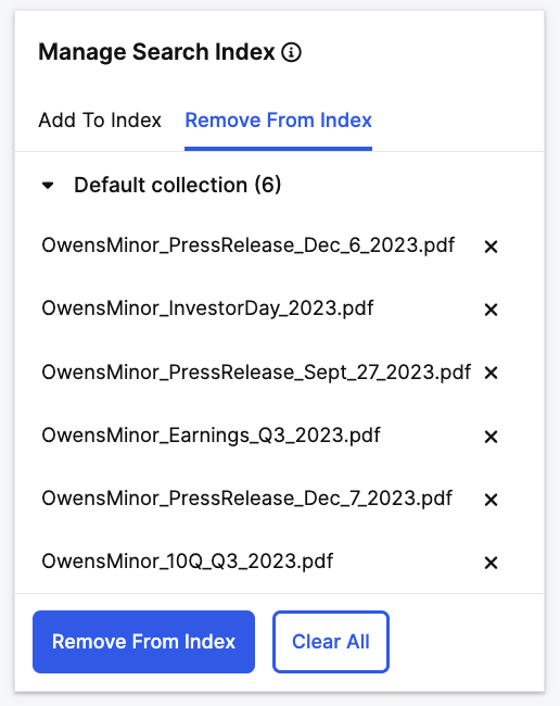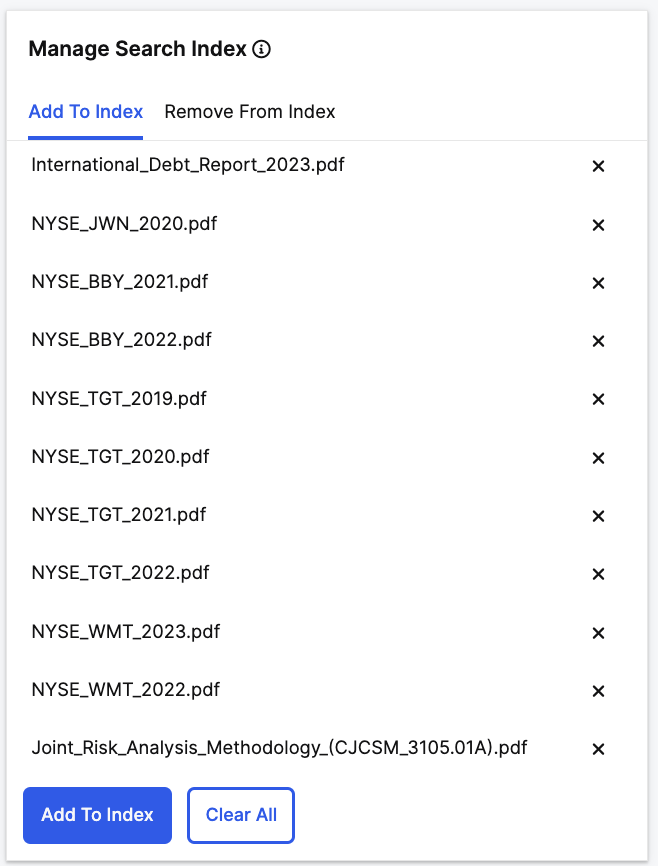 Add Documents to Index: Once desired files are selected, select Add to Index.