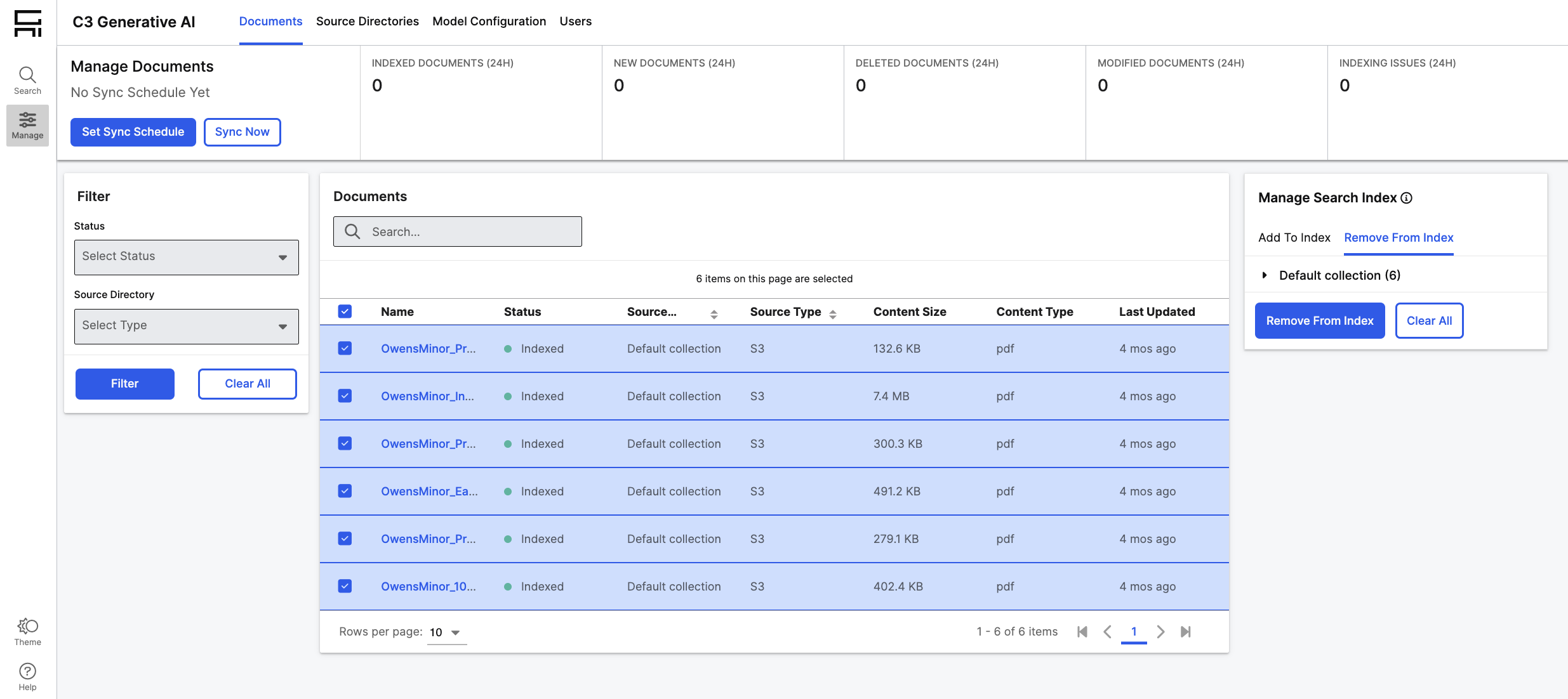 Sync Now: If you want to perform a one-time sync to refresh your search index, navigate to the Documents grid and select Sync Now.