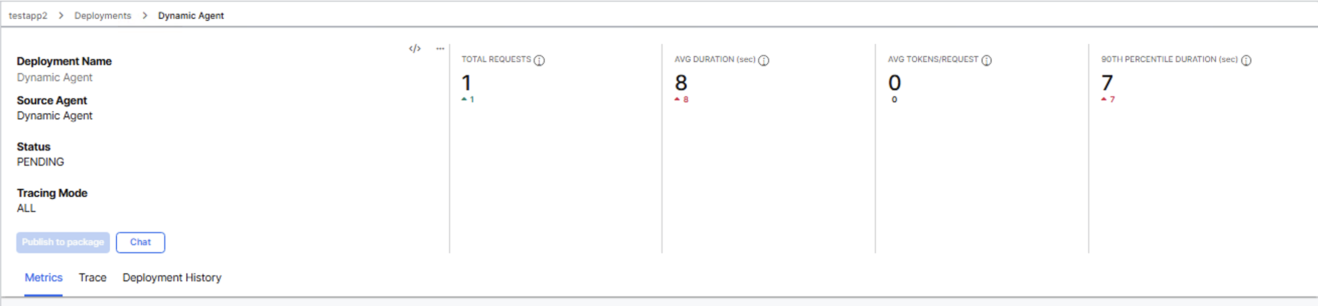 The header also includes action buttons: Publish to package and Chat to open the agent workbench.