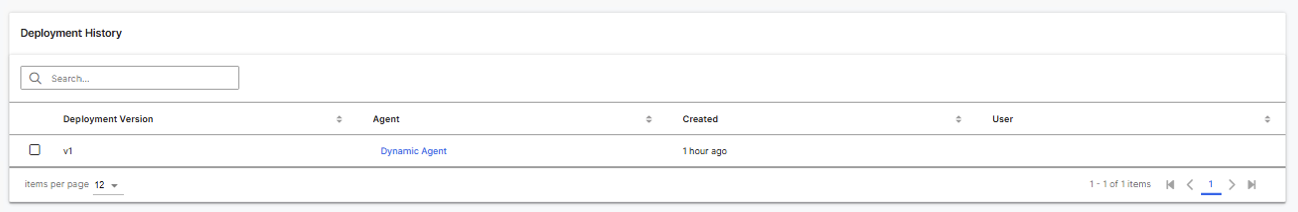 Any deployment operation creates a new version entry in this table. This includes deploying an updated agent, deploying a new agent to an existing deployment, or redeploying an agent created in the workbench or by code. This history tracks changes over time and identifies who made each update.