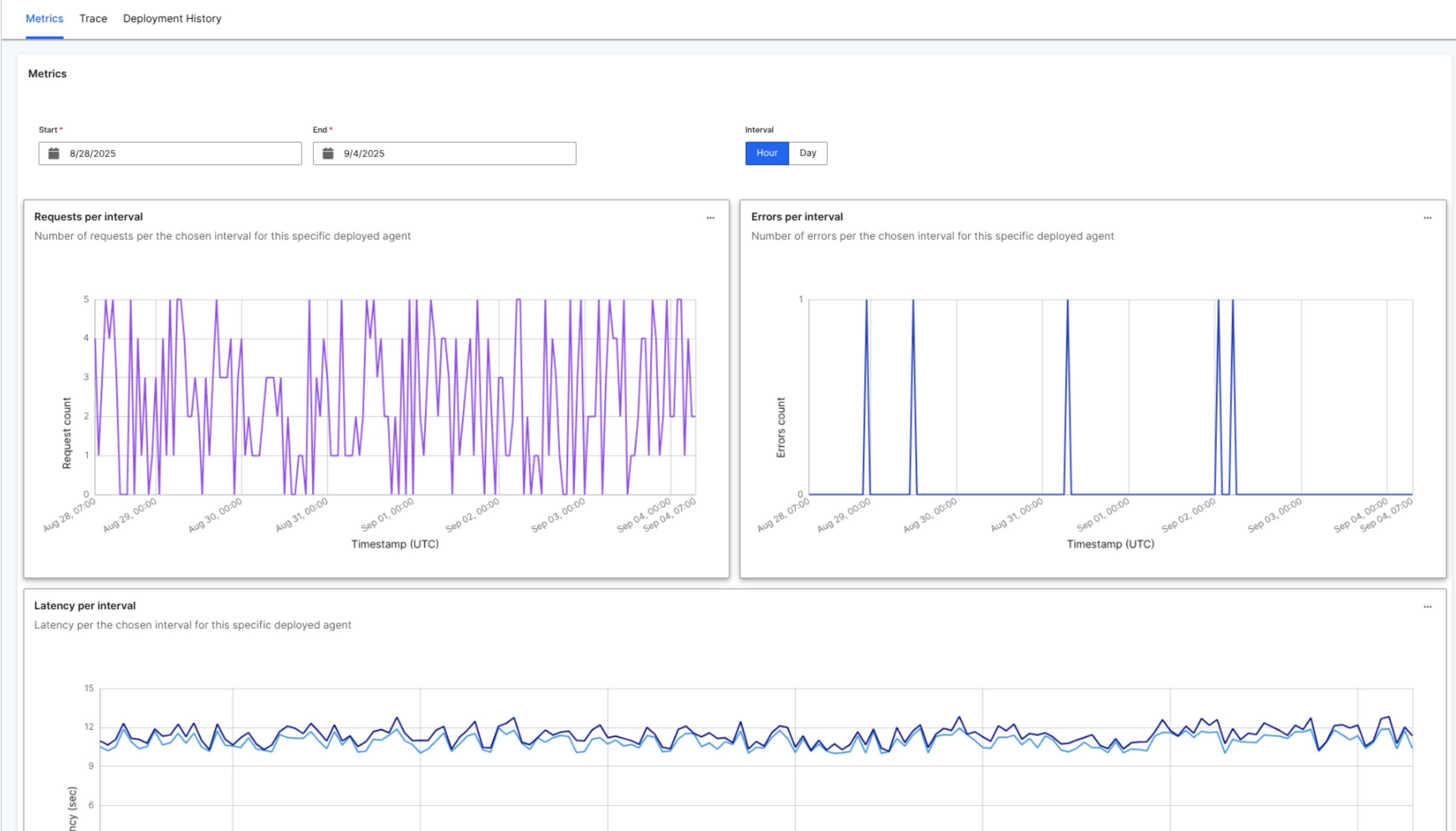 - Errors per interval: Number of errors that occurred during the selected time range.