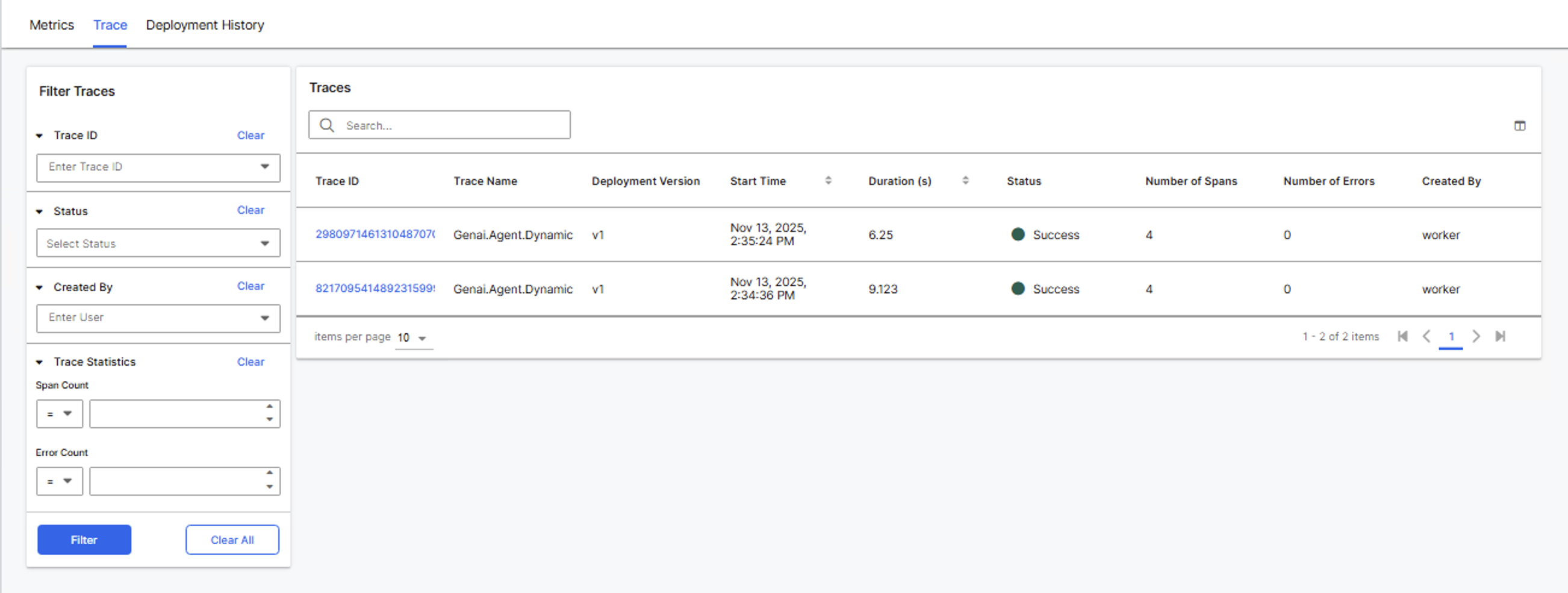 - Created By: Filter by the user who triggered the trace.