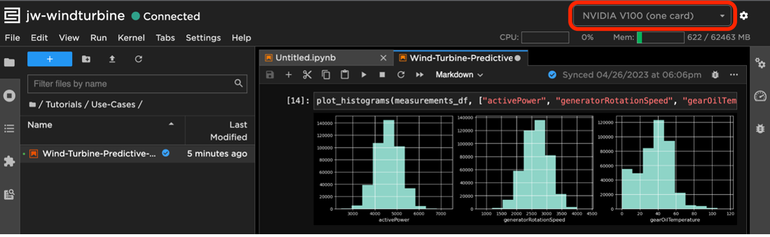 /jupyterto your application's web address, or use the Jupyter option in the application menu in C3 AI Studio.Support for JupyterLab running on GPU instances: When a GPU node pool and ResourceProfile are enabled by your operations team, you can select the GPU configuration using the resource configuration dropdown menu.
