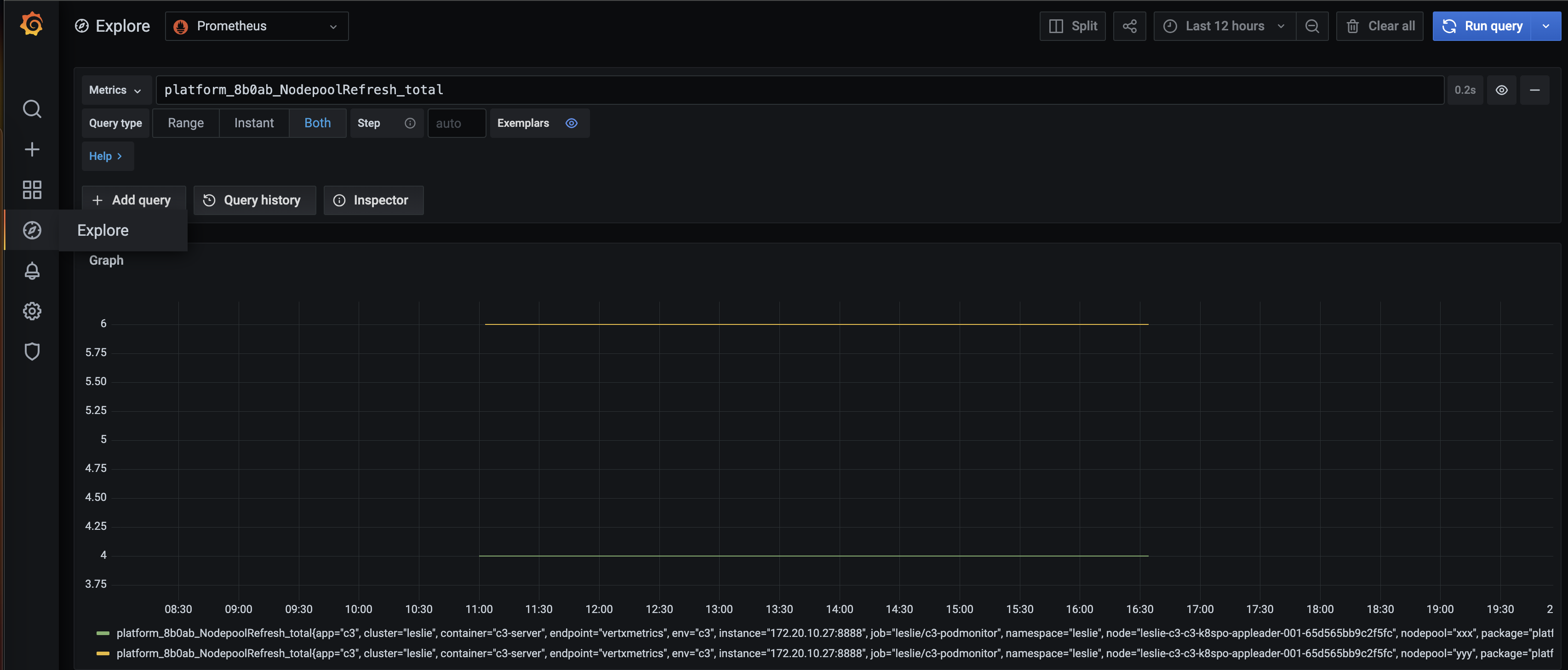 For exploration of this metric series in Grafana, you can go to Explore page and type meter name which shows a quick plot, all available tags and metric values.