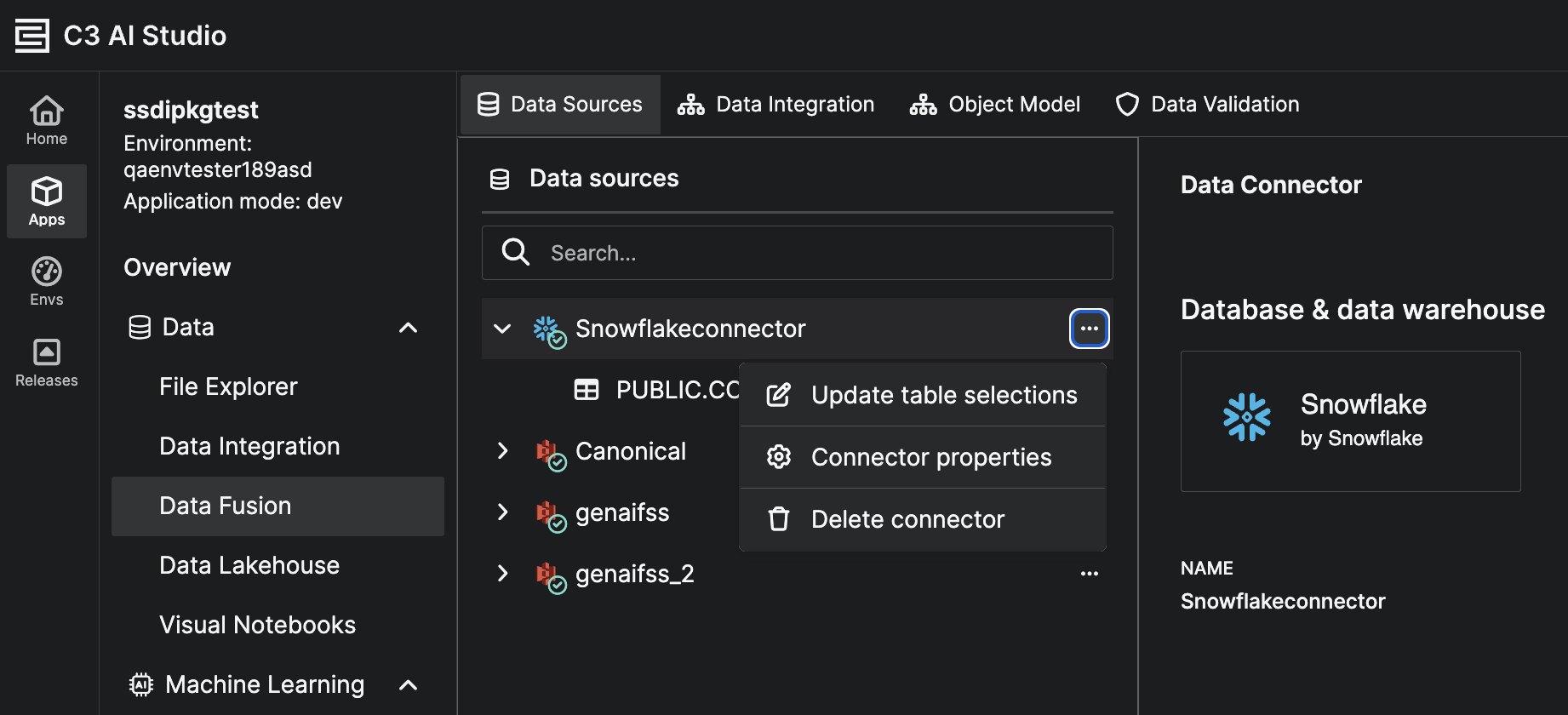 In C3 AI Studio, navigate to Data Fusion › Data Sources.