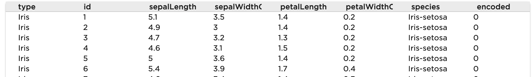 var schema = SqlSourceCollection.forName("Iris").inferSourceType().declaredFieldTypes;