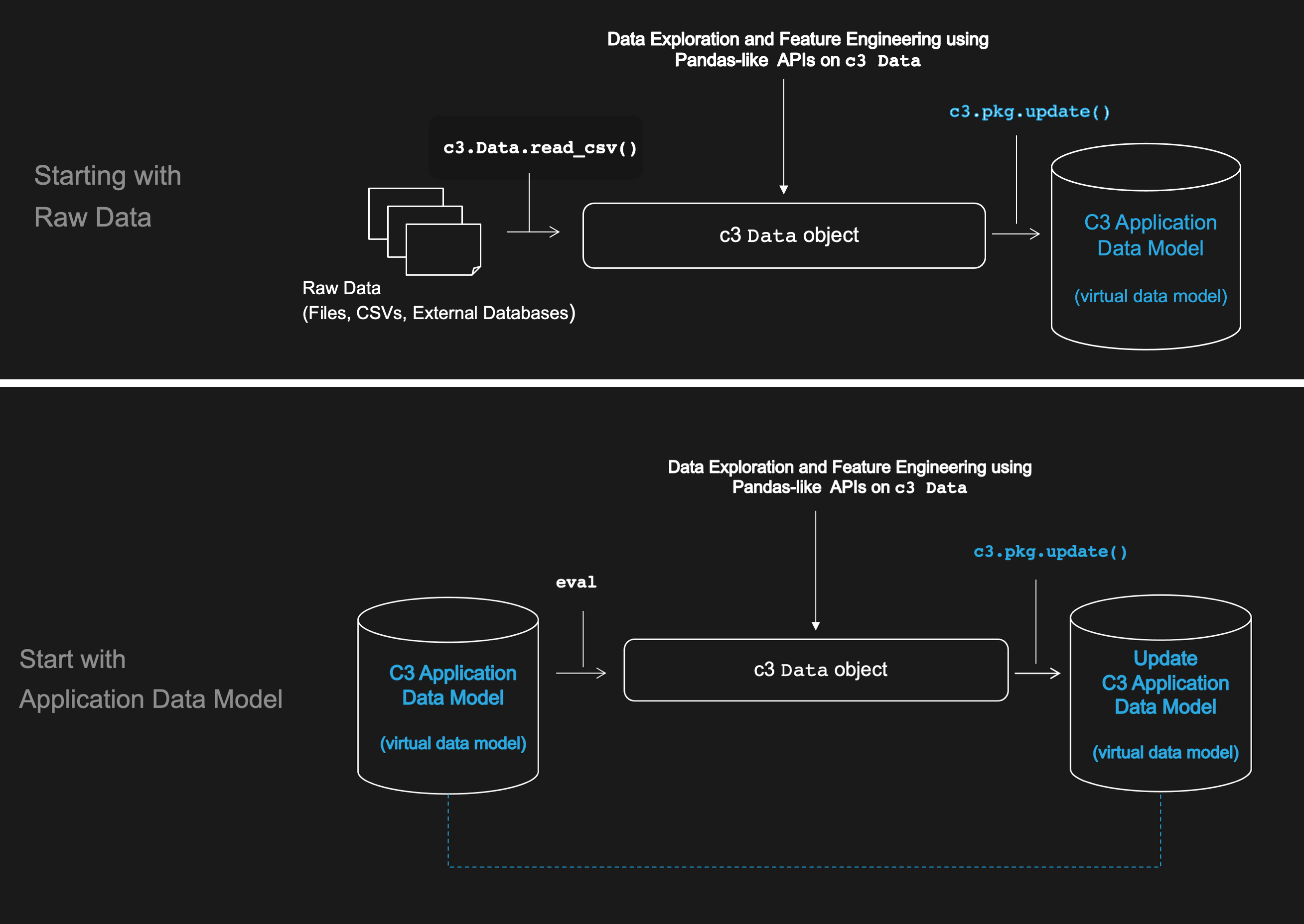You can start using C3 AI Datasets with Raw Data or with an existing Application Model.