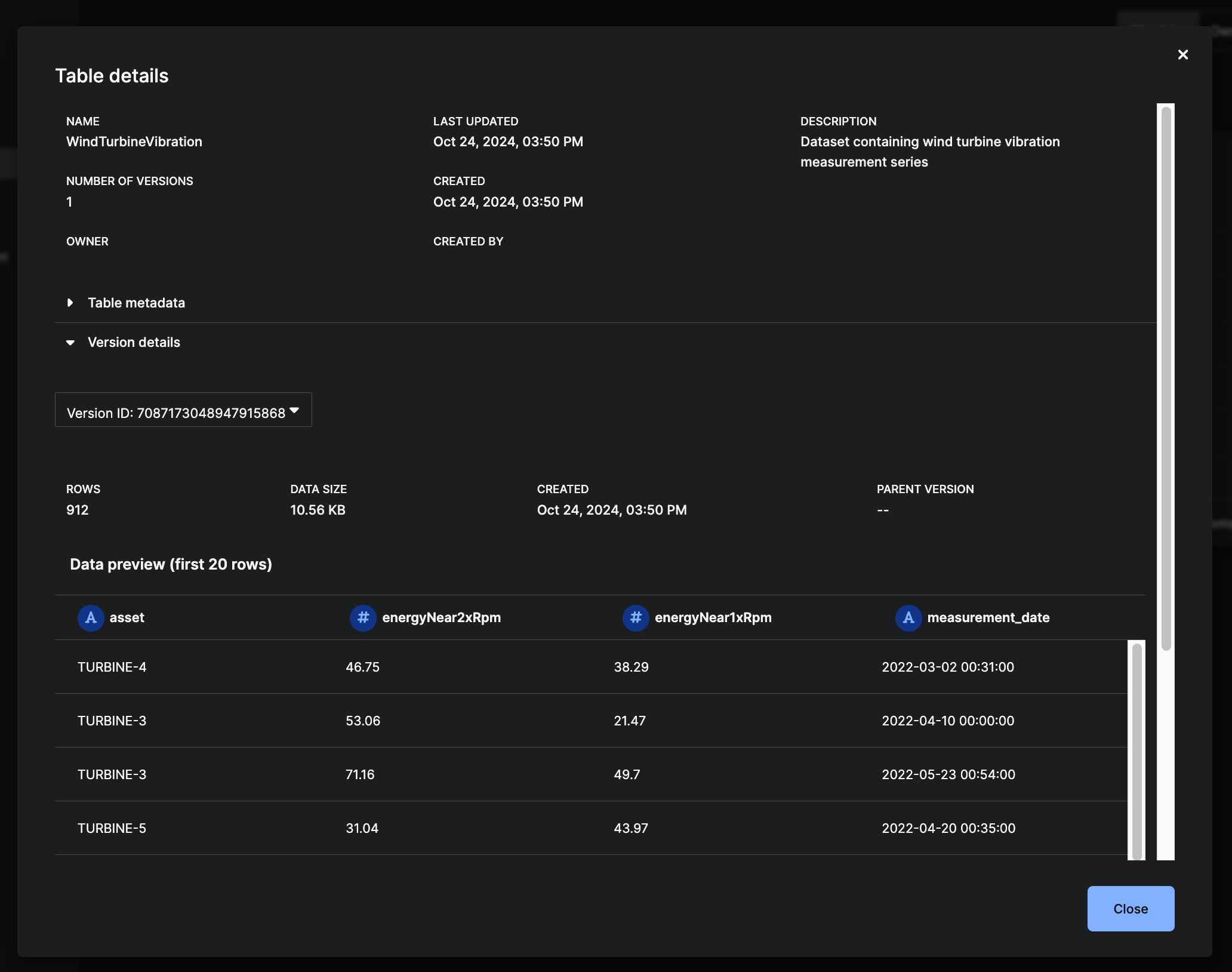 C3 AI Datasets are updatable and versioned. New data may be appended to a dataset, with the ability to roll back to prior versions of a dataset.