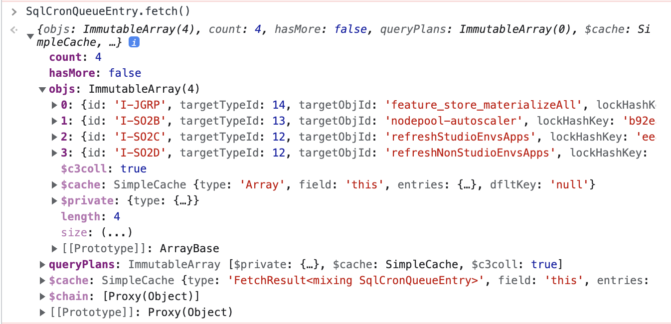 CronQueue.find()As a further example, you can list entries in the CronQueue with c3MonitorQueues: