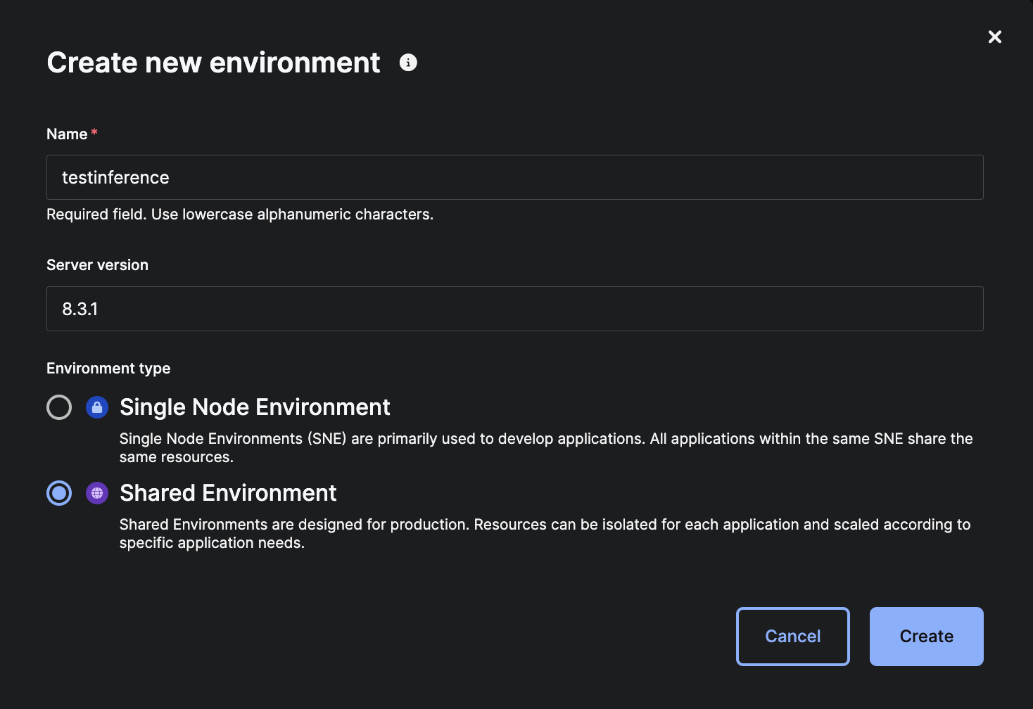 inference) in the Name field.In the "Server version" field, enter the desired server version.