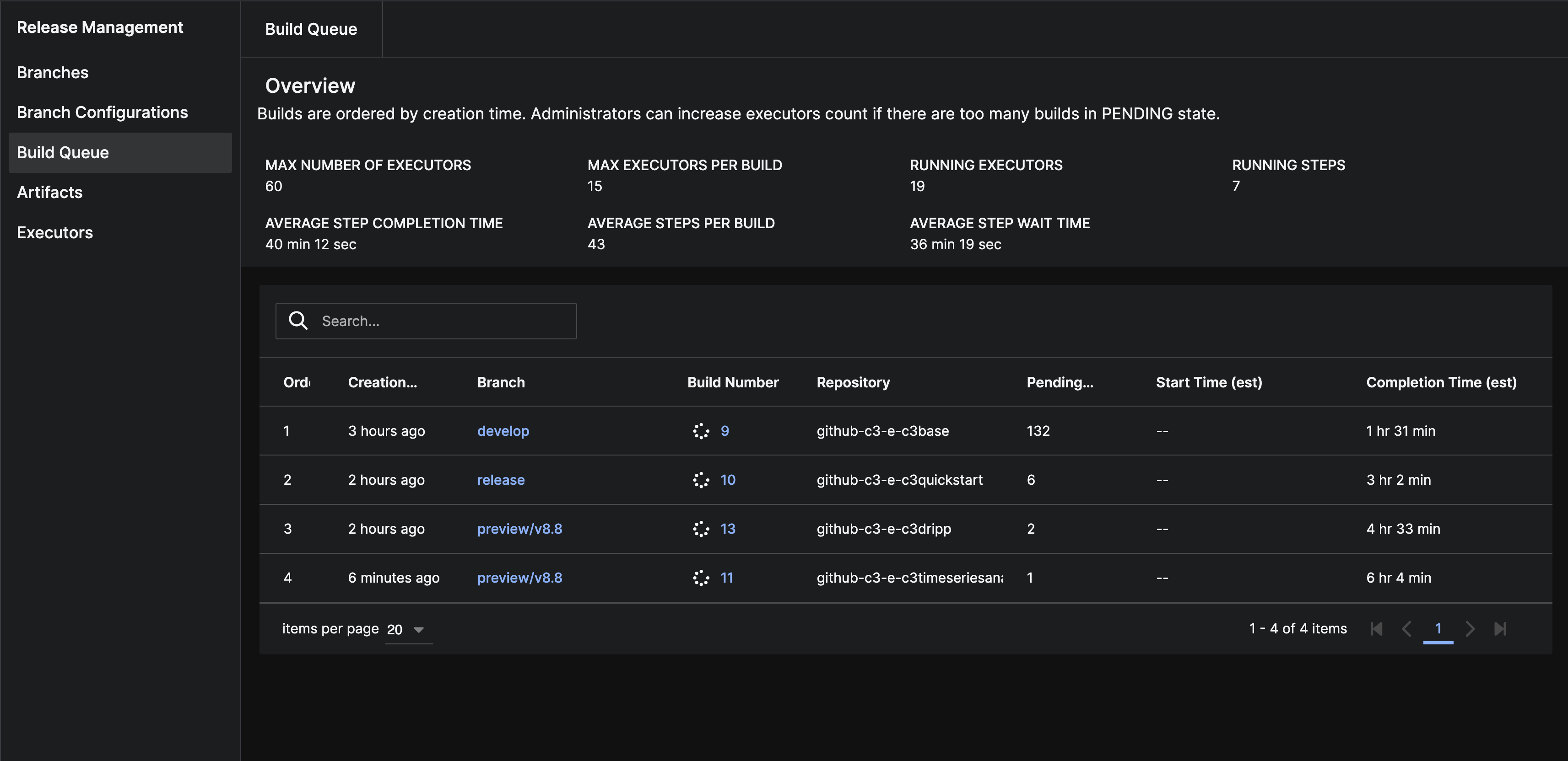 | Completion Time (est) | Estimated timestamp for when build finishes running. |