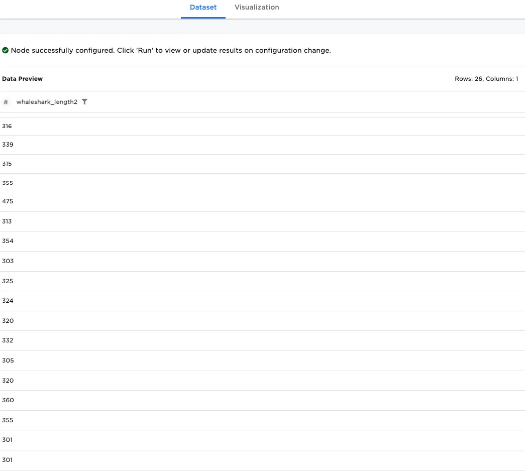 - For Select Sample 1 Column, select whaleshark_length_inches.