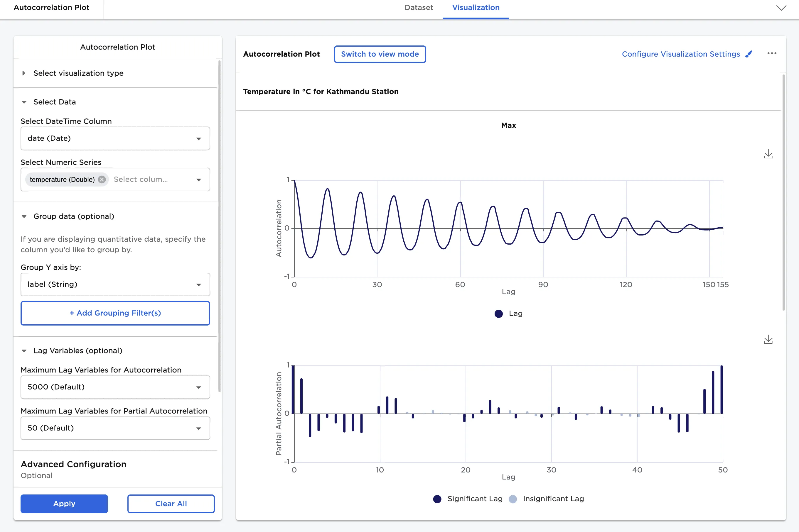 Figure 6: Example autocorrelation plot with custom visualization settings