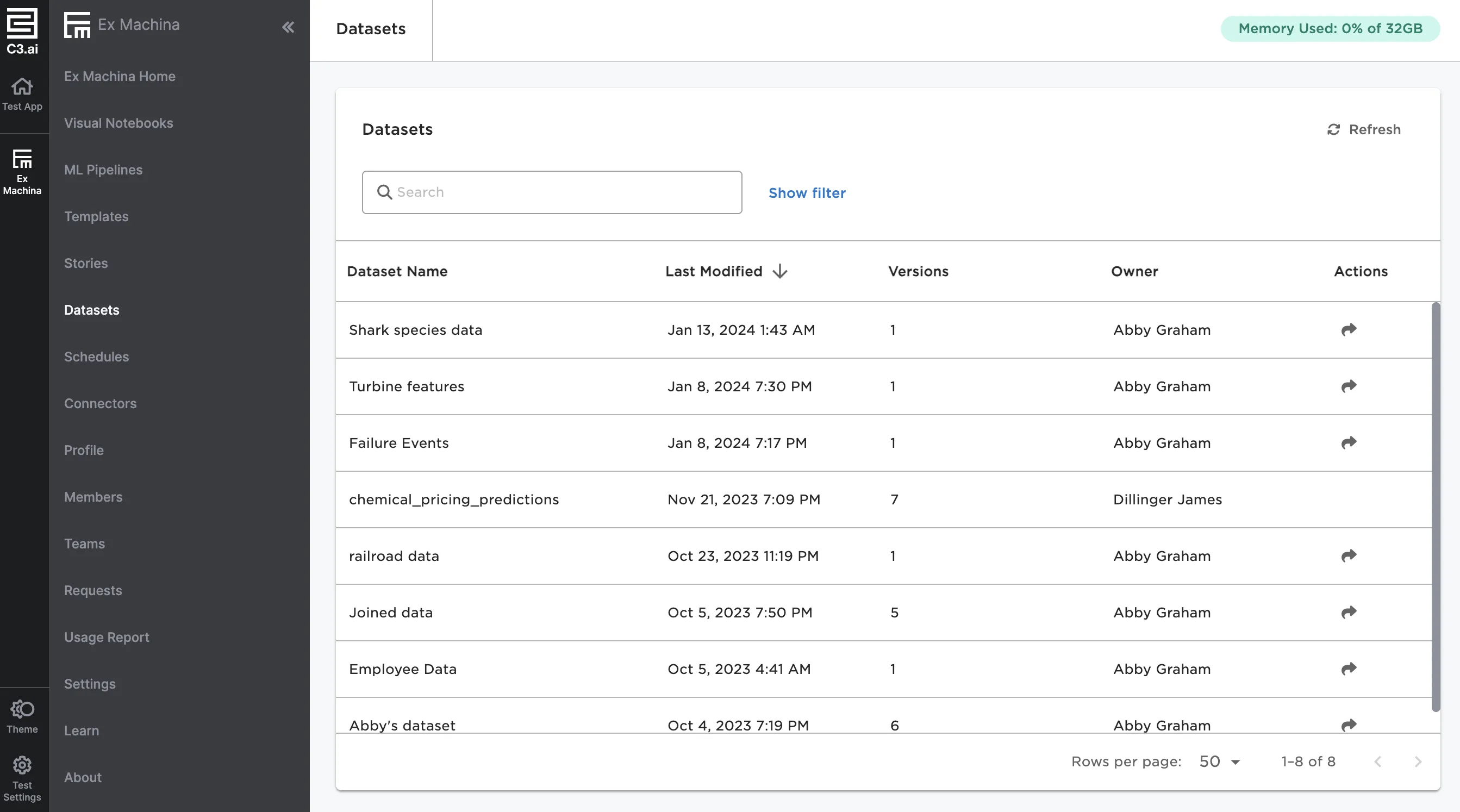 You can also view a list of all Visual Notebooks datasets you have access to from the specific Datasets page.