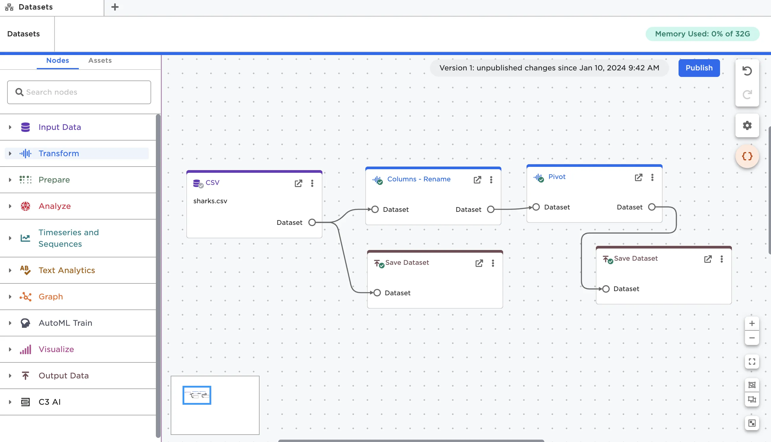 If you ever want to create a new version of the dataset, run the same Save Dataset node again or use a new Save Dataset node somewhere else in your workflow. As long as you select the same topic name, the dataset should update versions correctly.