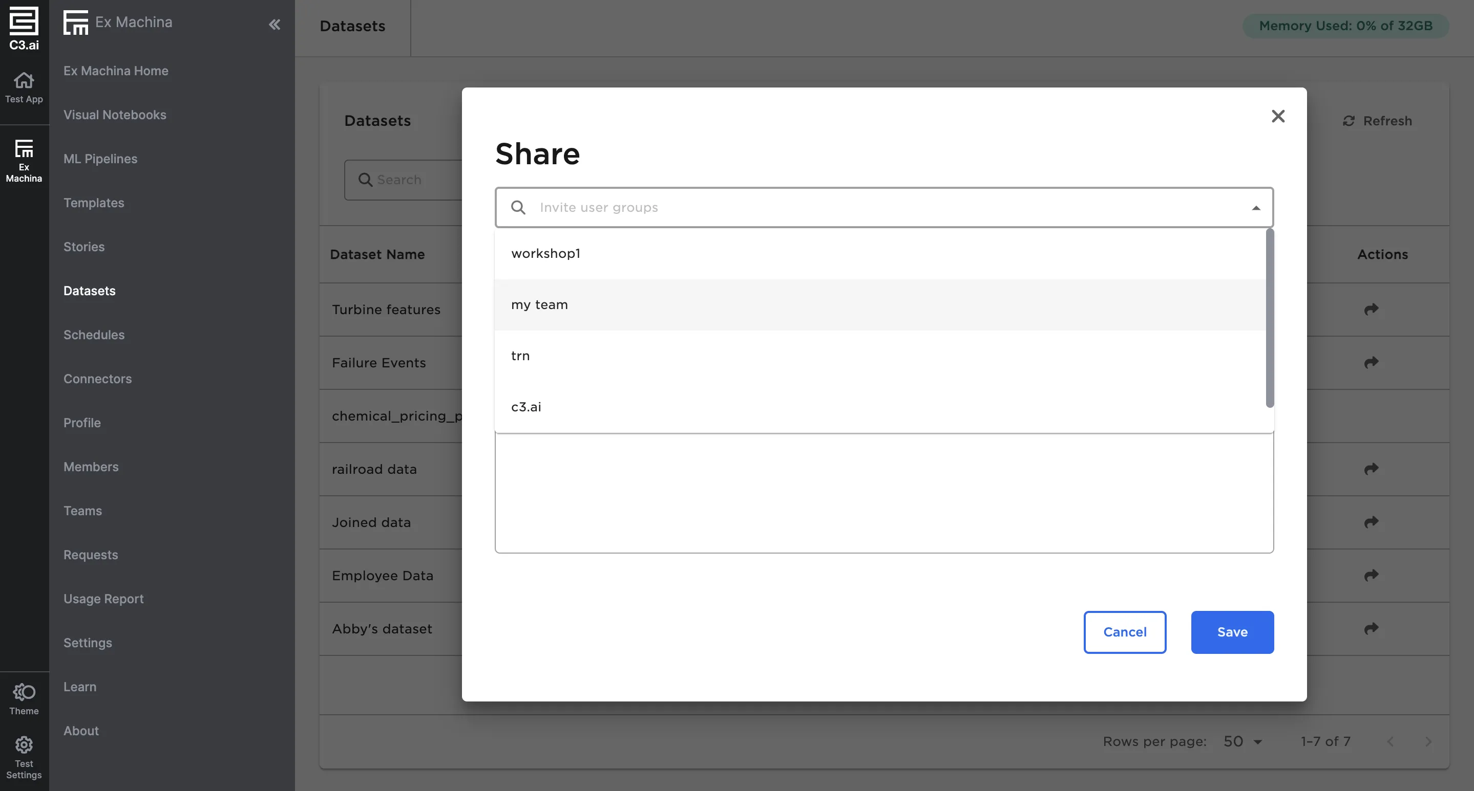Select a team to share the dataset with, then select Save. To create and manage teams, visit the Teams page.