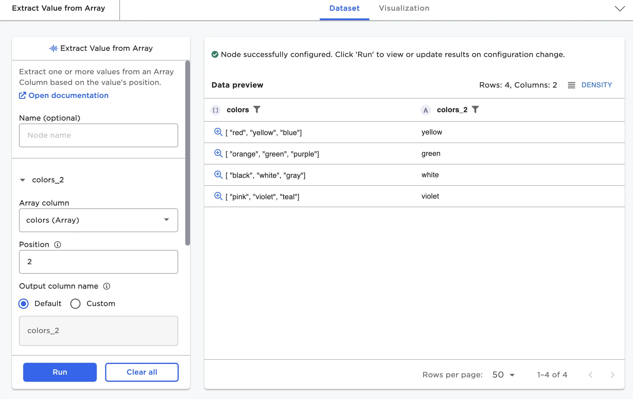 The Extract Field from Object node, as an example, enables users to view the schema of a potentially deeply nested object column and select one or more fields to extract