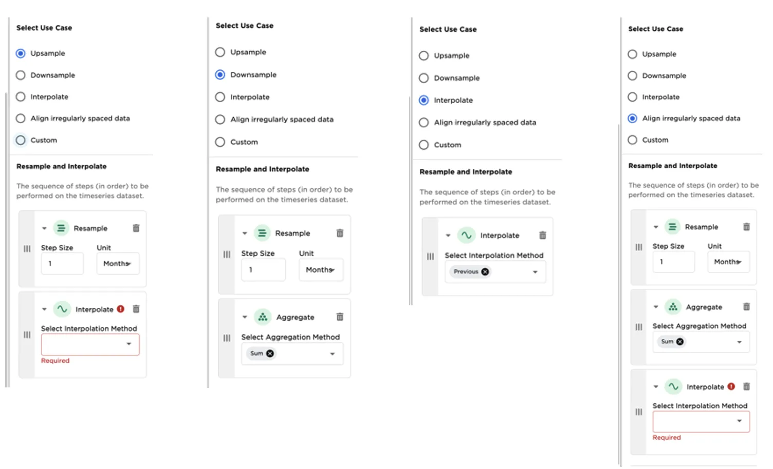 Figure 8: Timeseries Resample and Interpolate use case patterns