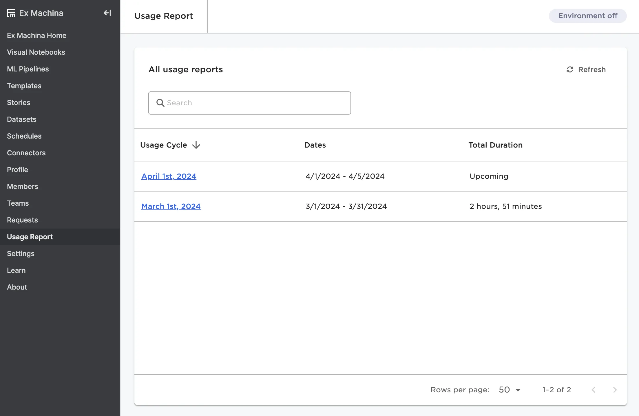 Figure 15: A usage report for a specific month