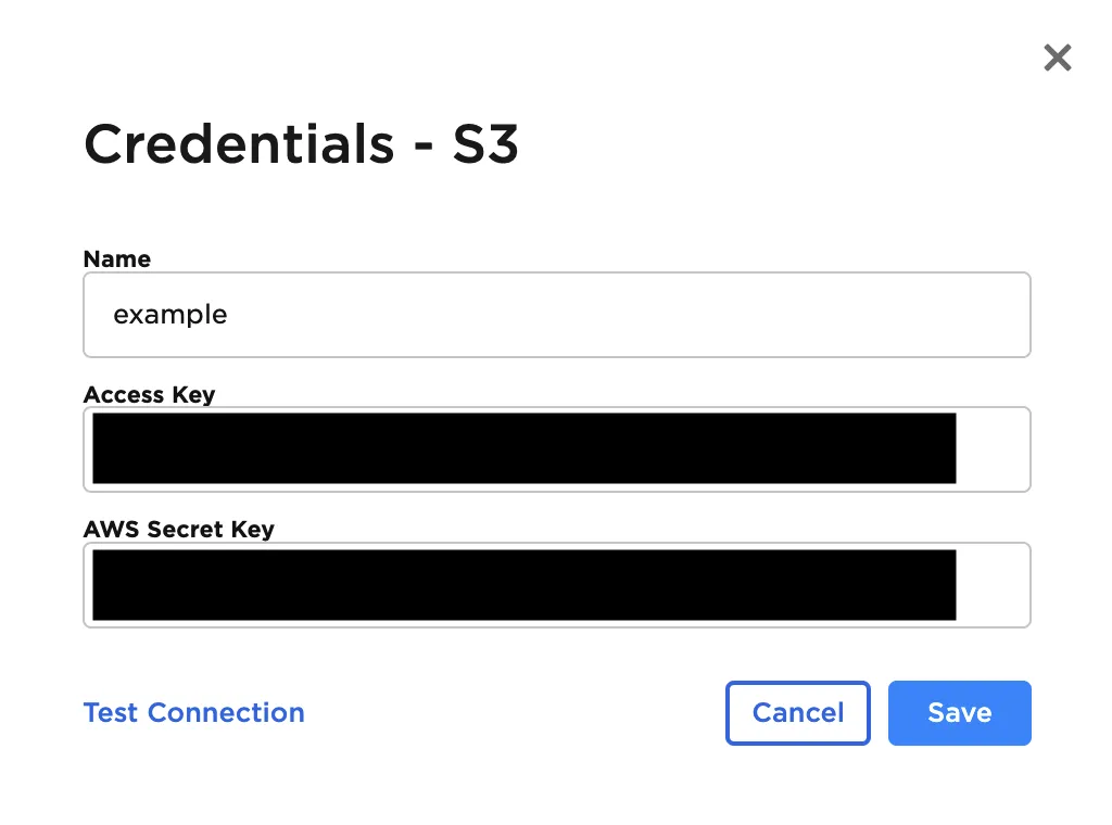 | Credential Required | The information needed to access S3 data Select a saved credential from the dropdown menu. Select the gear icon to add a new credential or delete existing credentials. |