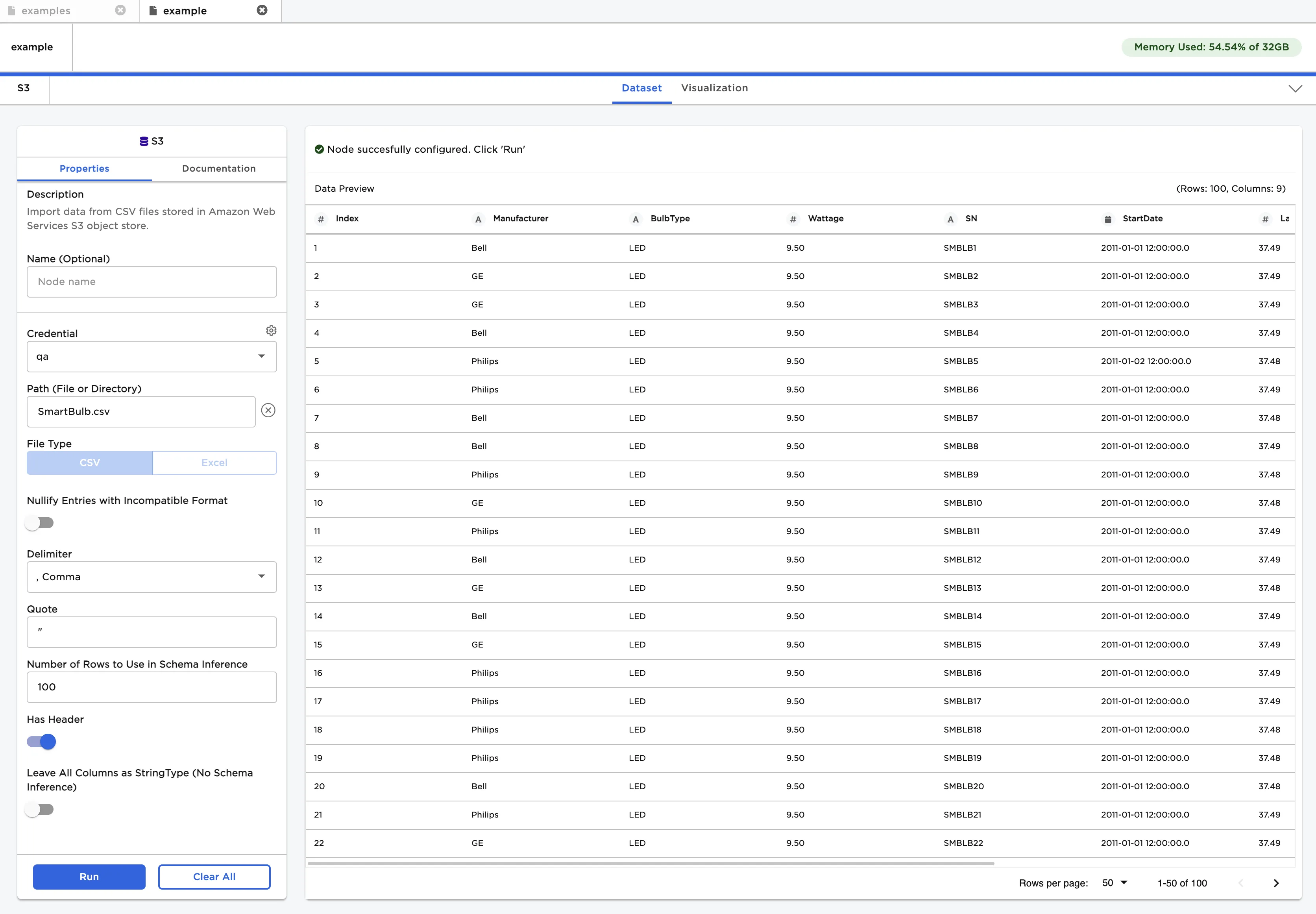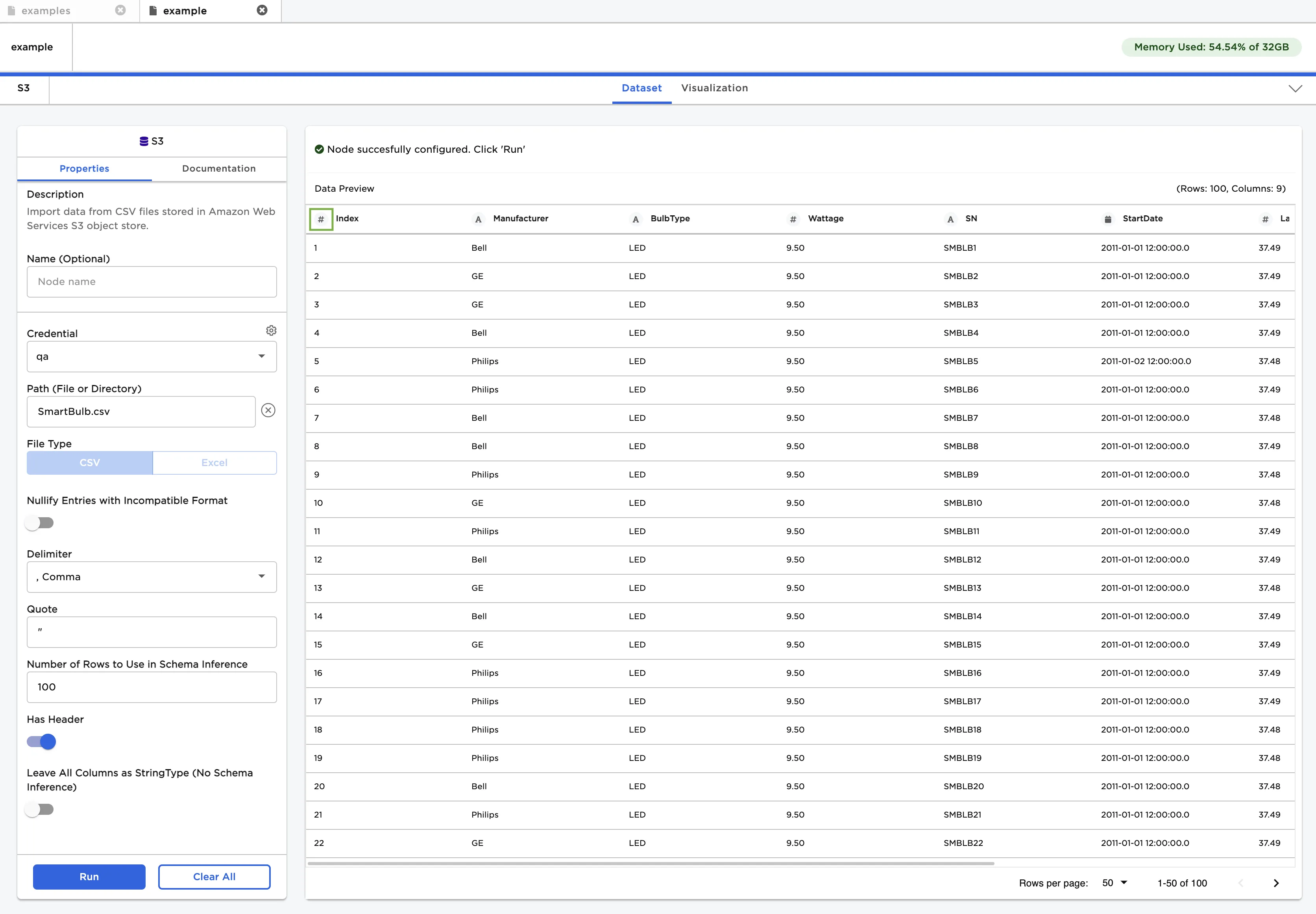 | Name Default: S3 | A user-specified node name displayed in the workspace |