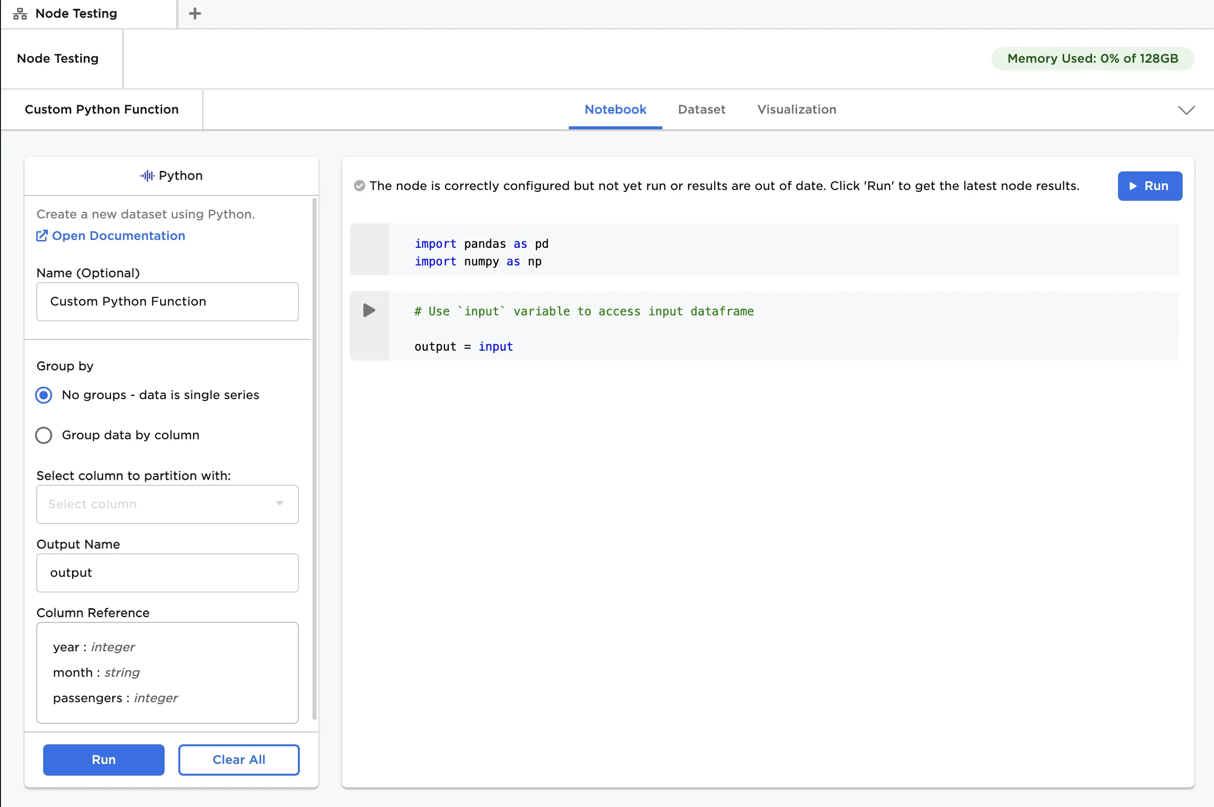 Figure 4: Example notebook with custom Python function