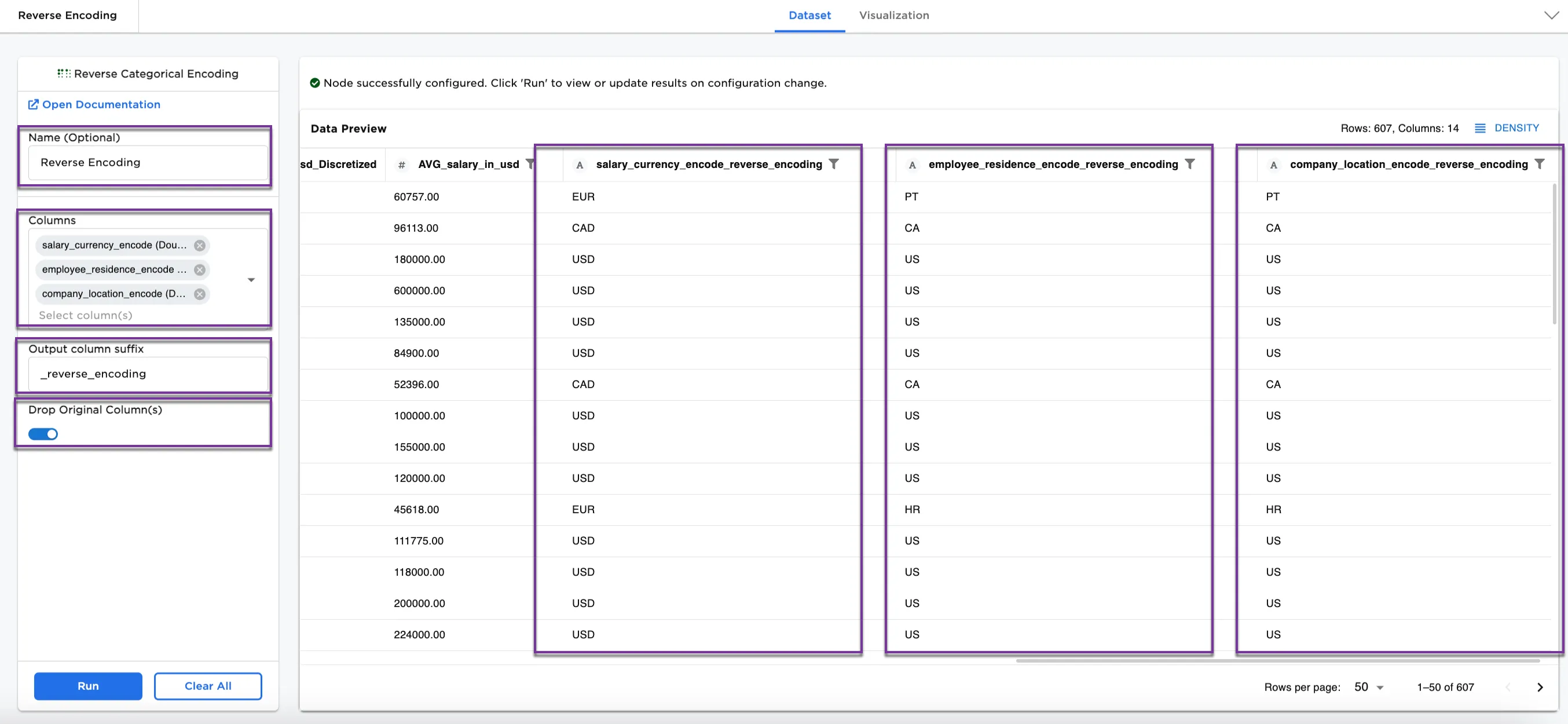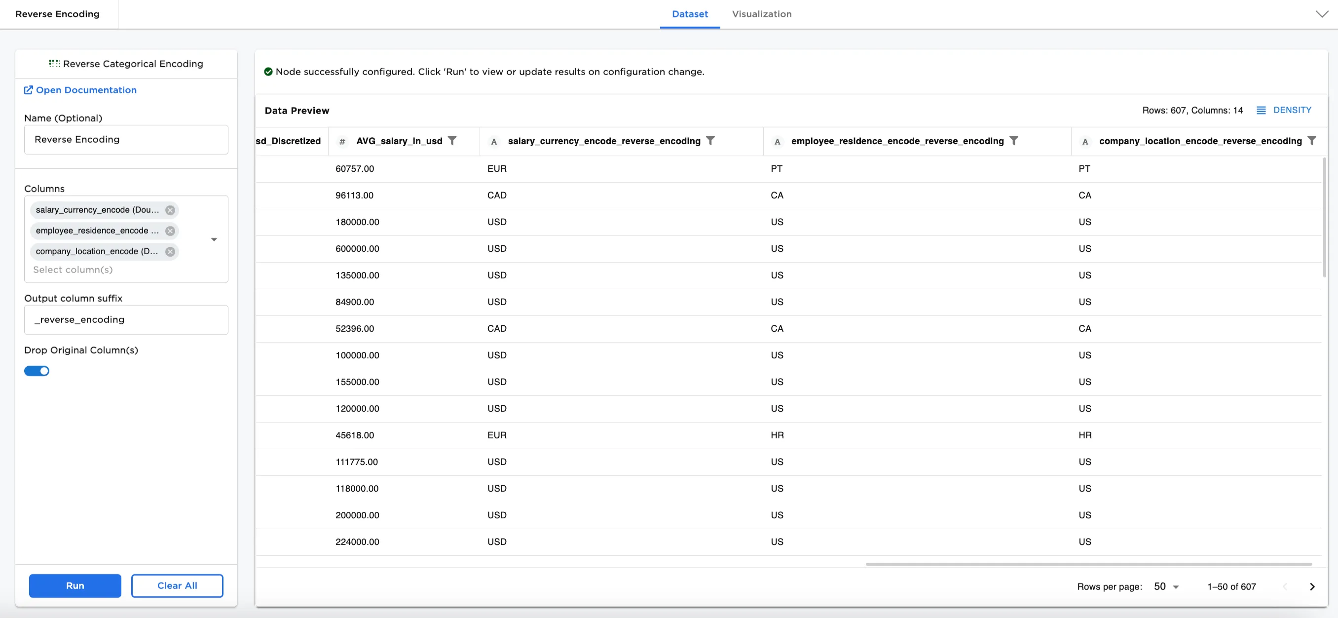 _reverse_encodingis added as the suffix for each new column. - Toggle on the Drop Original Column(s) to keep the original column.