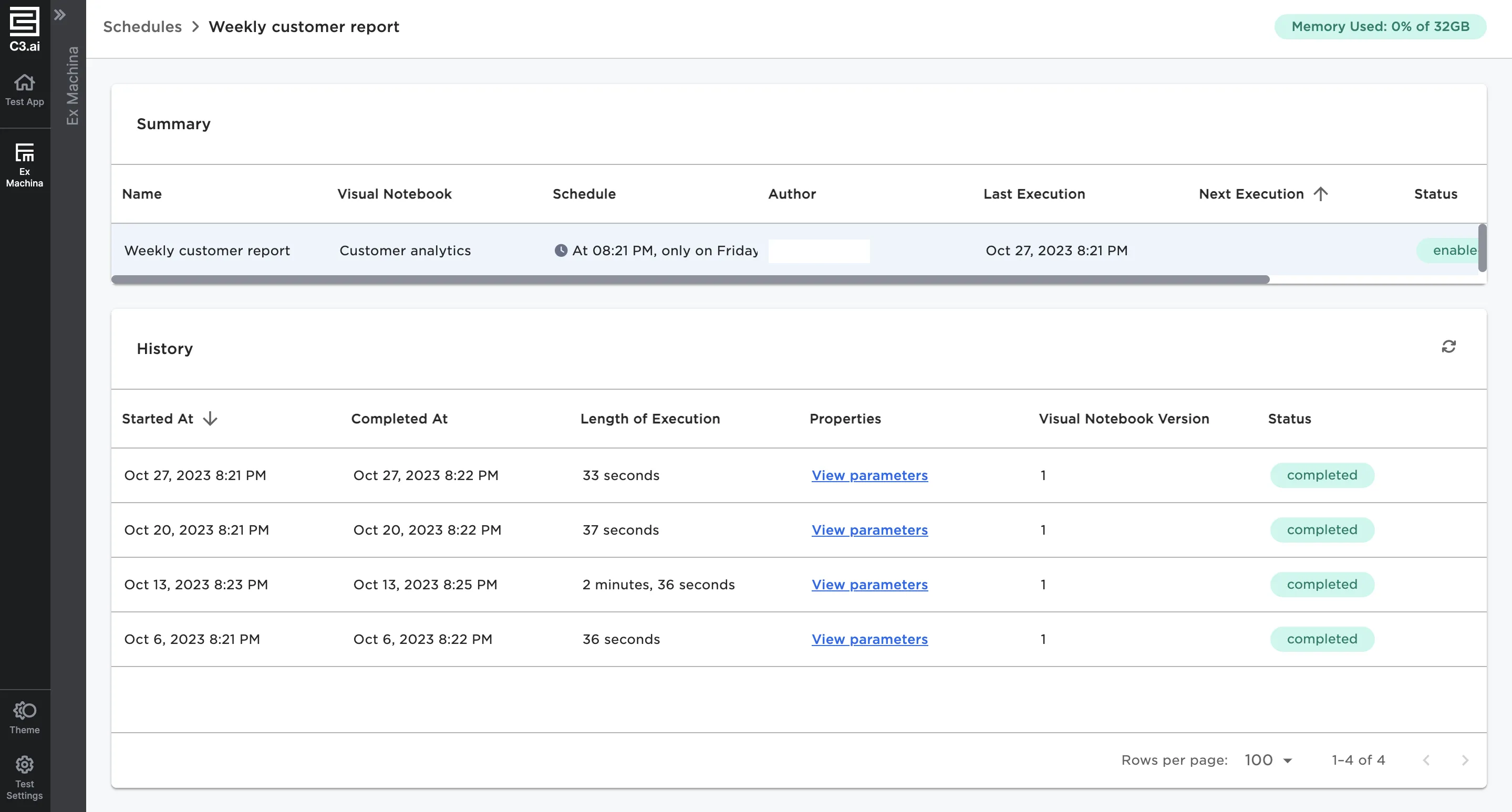 View previous schedule executions