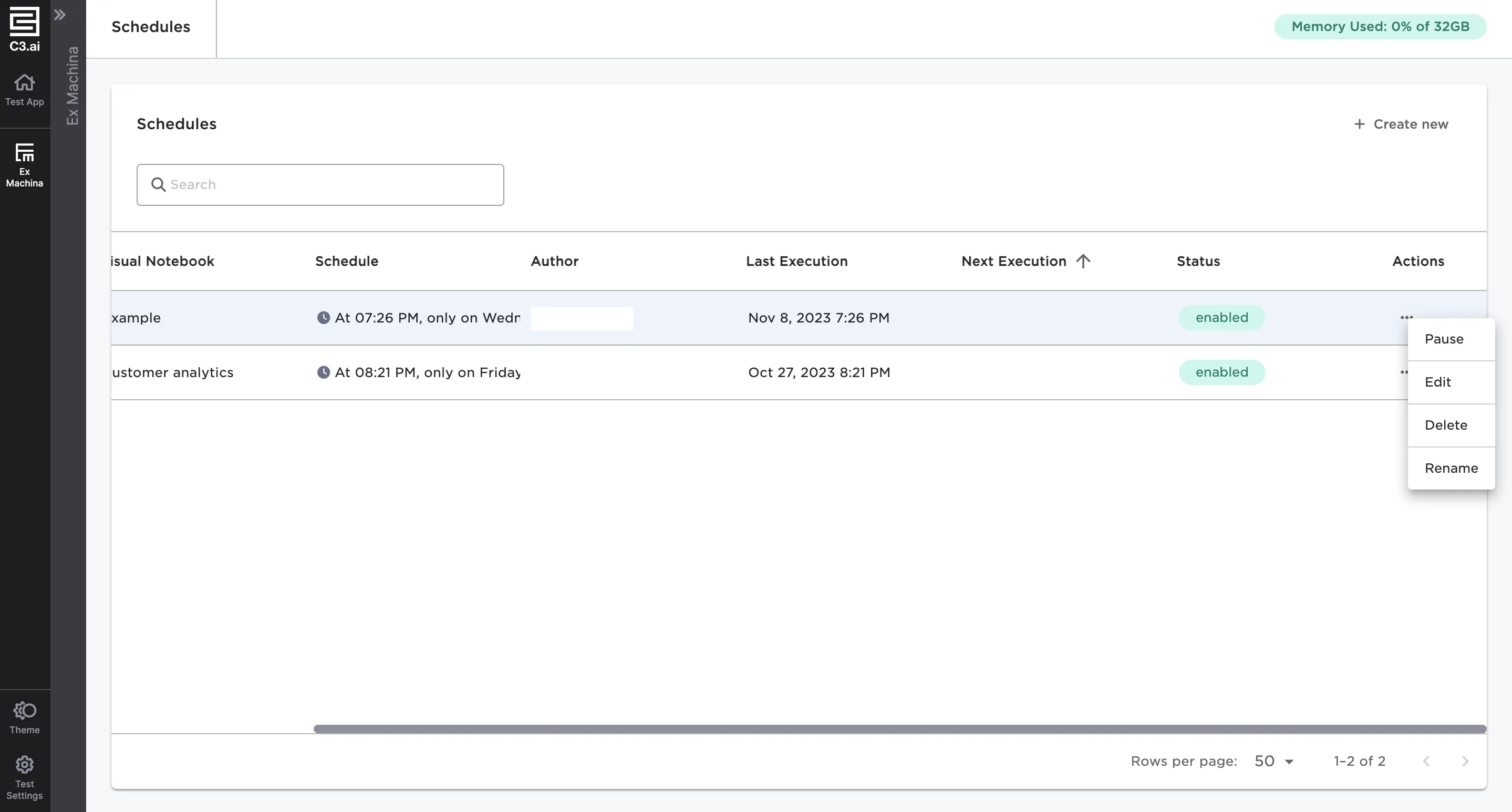 Select the three dot menu under Actions to pause, edit, delete, or rename a schedule.