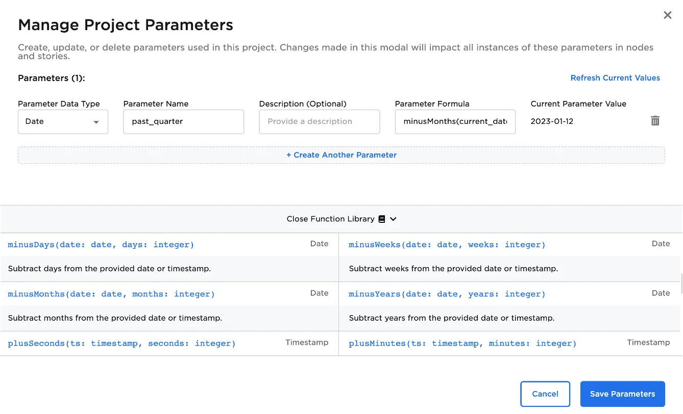 Create a parameter that returns the range of dates that you'd like to use when pulling data. In Figure 2 below, the parameter returns the date three months from the current date.
