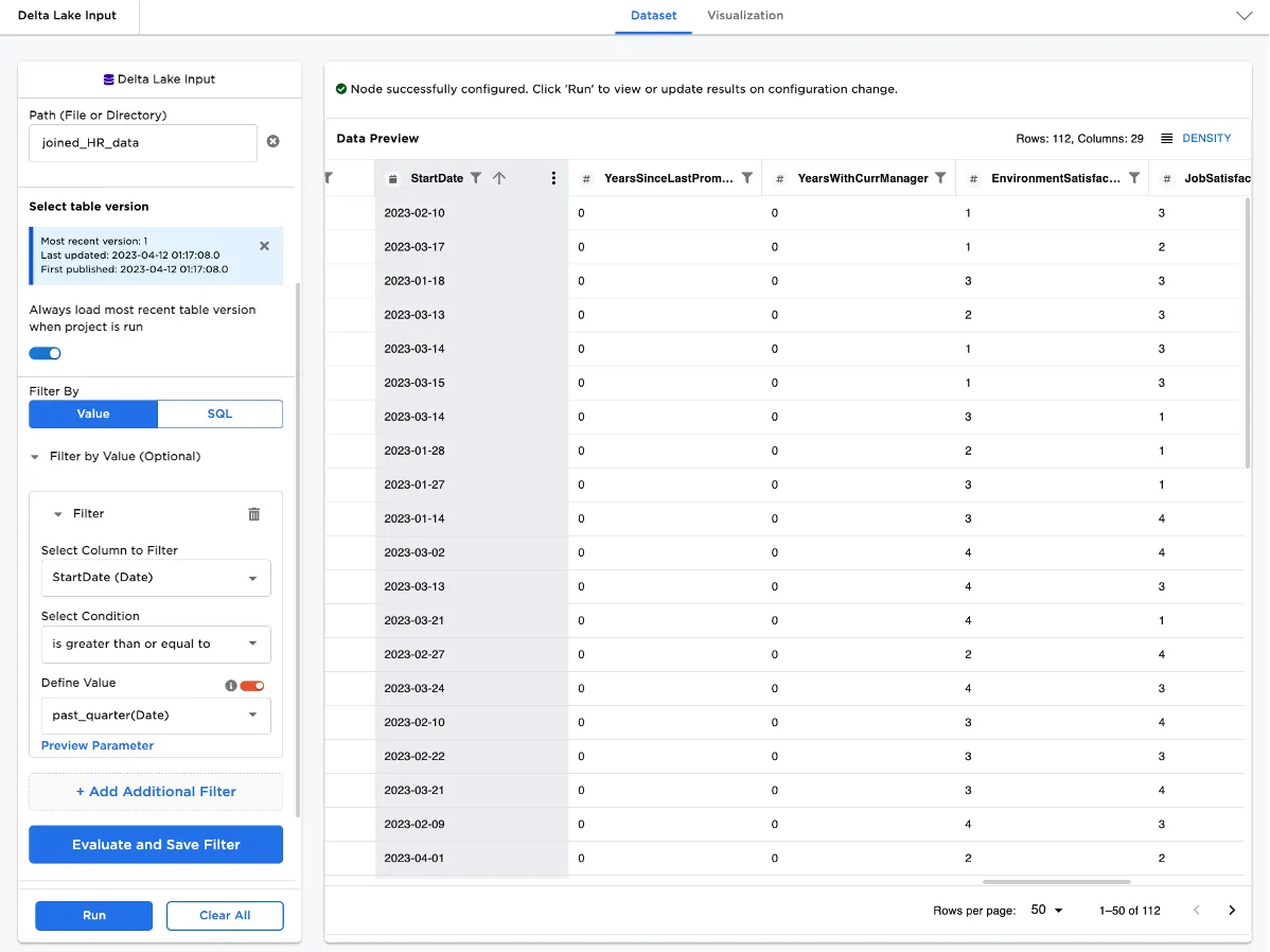 Connect the connector node to the trained ML pipeline, and run the node to generate predictions on the latest data specified by your parameter.