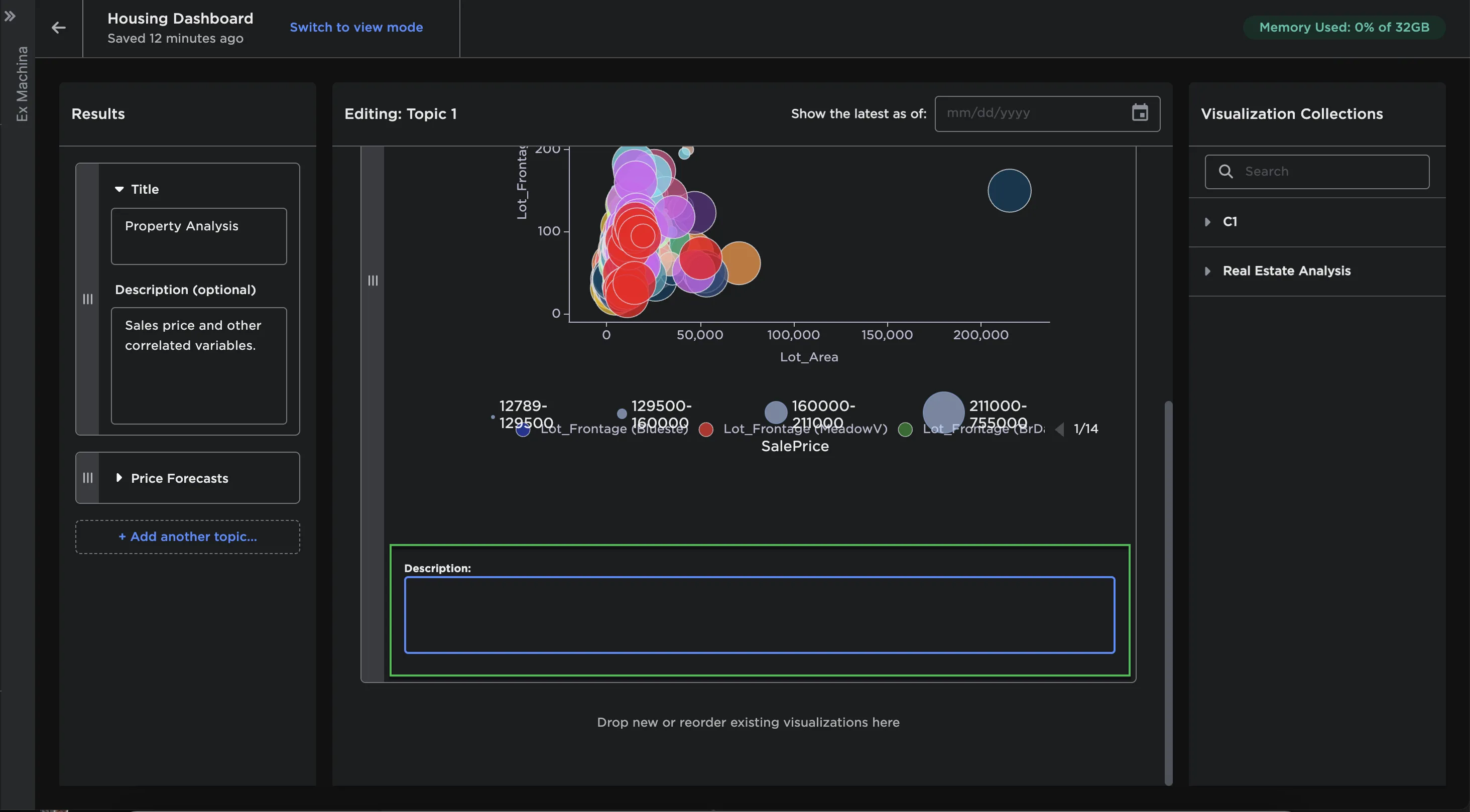 Add descriptions to your visualizations by typing in the Description box underneath each chart.