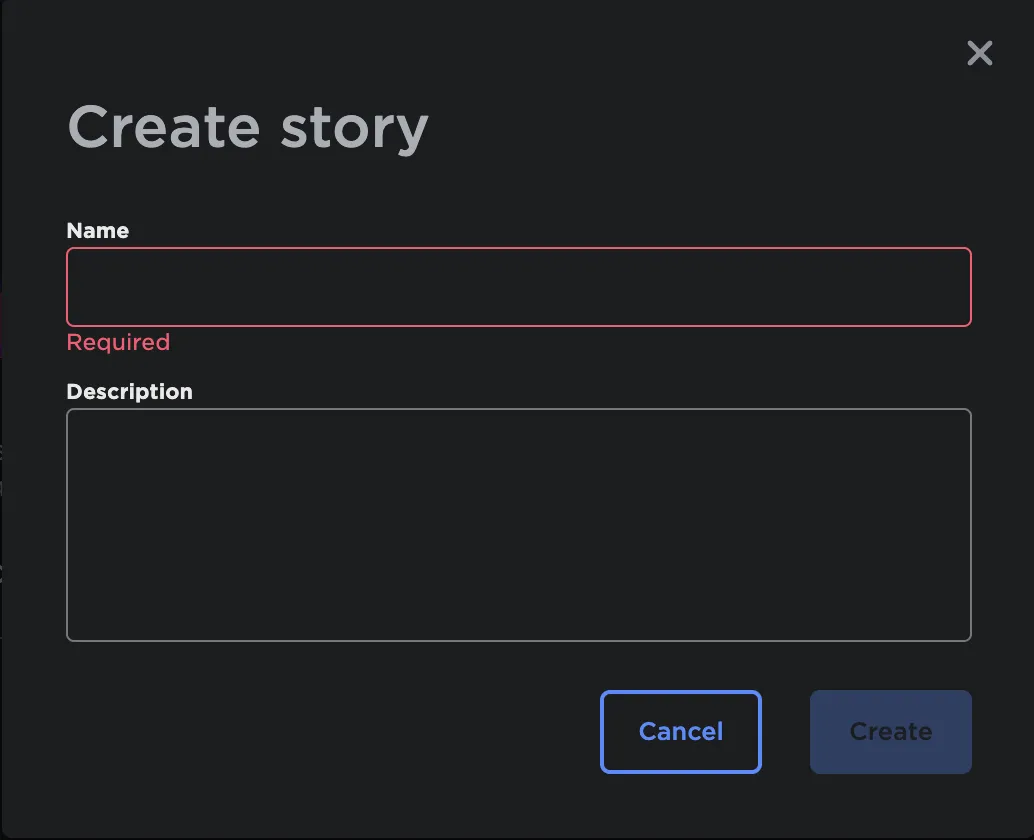 Create a story from the homepage or from the dedicated stories page. Enter a name for the story and add an optional description.