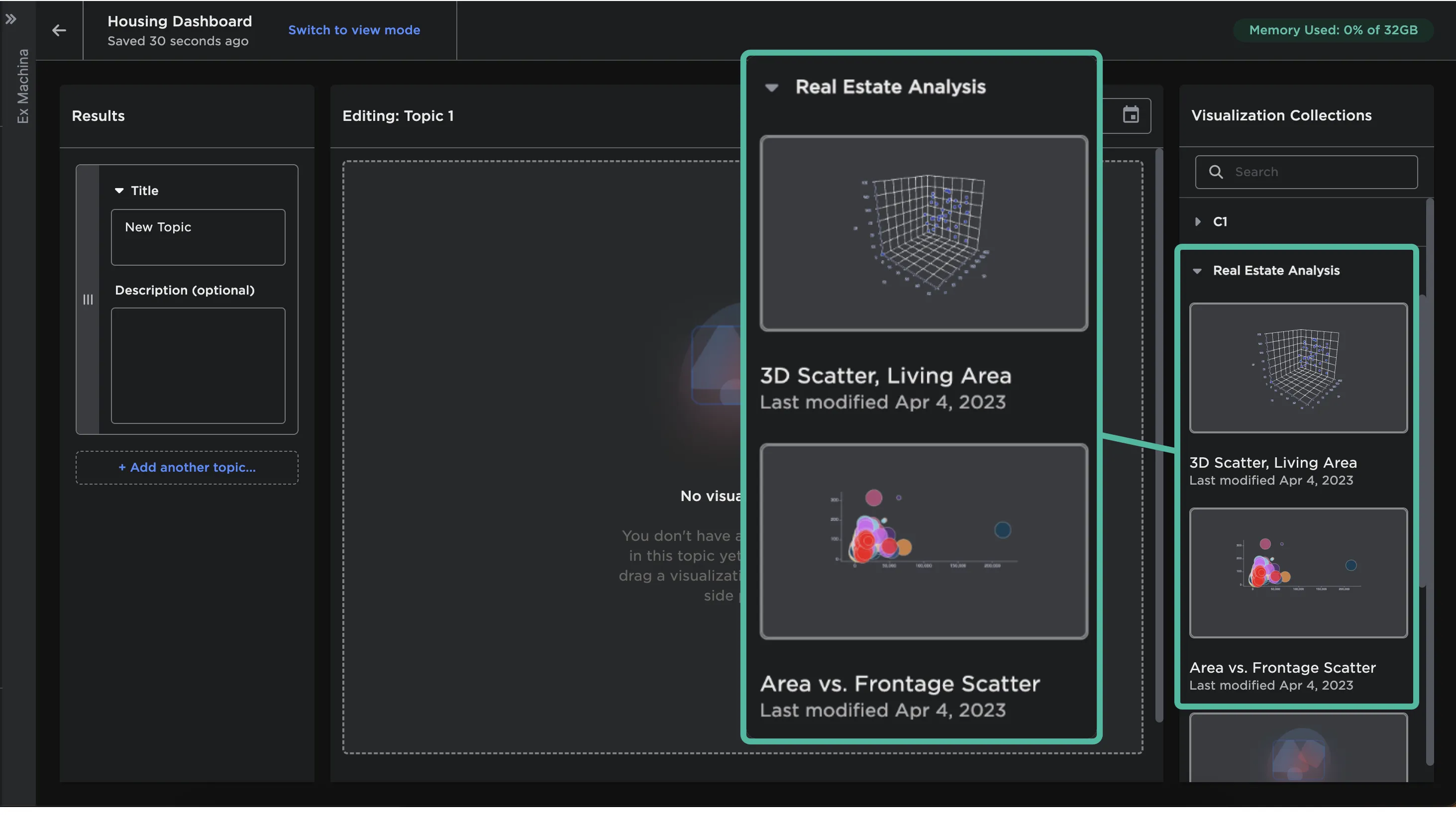 When the modal opens, provide a name for the visualization. Then, select an existing collection or create a new collection.