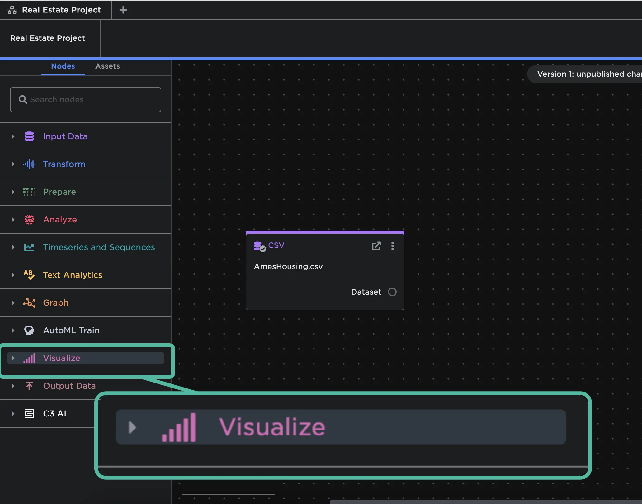 Visualizations are created within visual notebooks using the visualization tab or dedicated visualization nodes.
