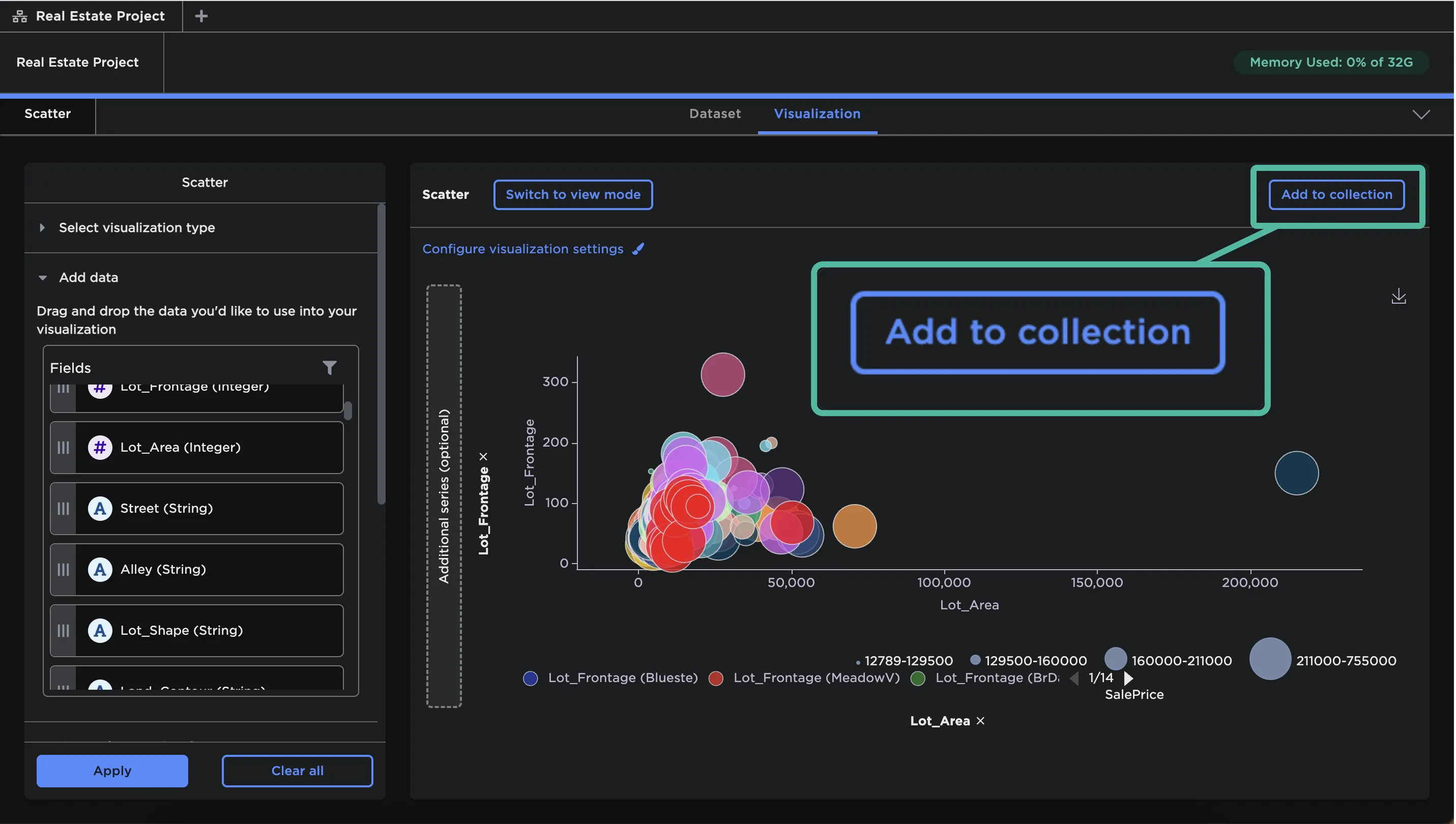 Once a visualization is configured, select the Add to Collection button in the top right corner.