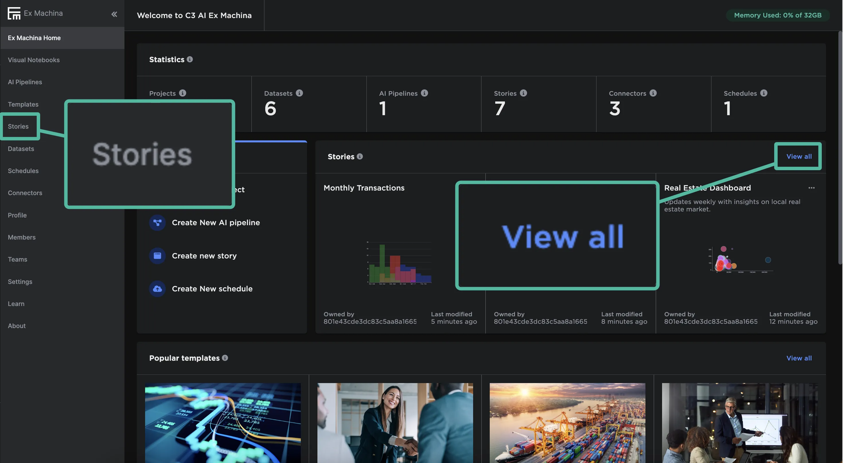 To see more stories, select View All or navigate to the stories page from the sidebar navigation menu.