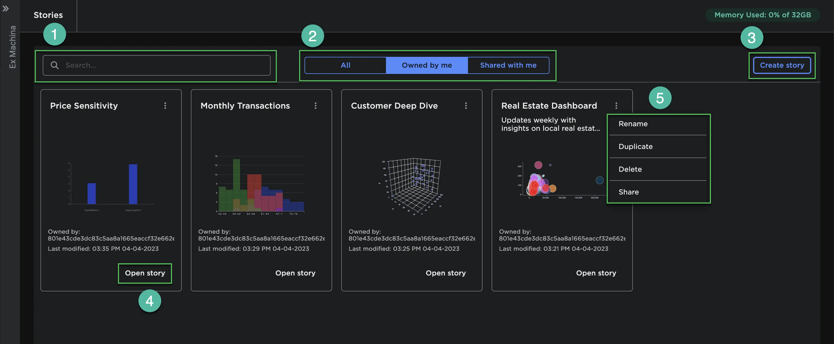 - Select the three-dot overflow menu beside a story to rename, duplicate, delete, or share that story