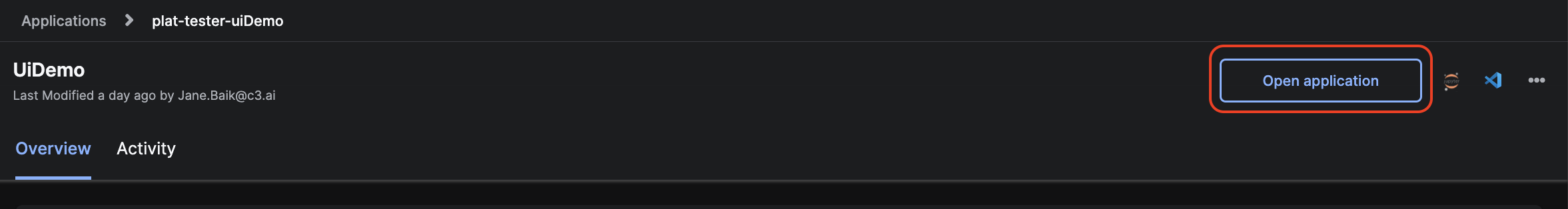 - From the Home page or go to the Applications page of C3 AI Studio and select the application that has