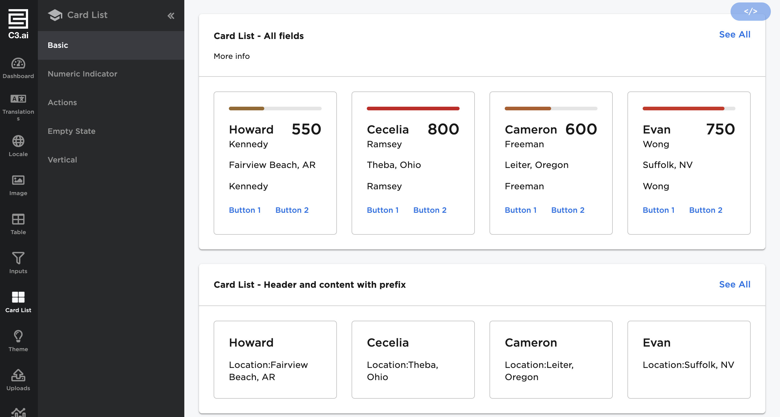 - Available UI components,